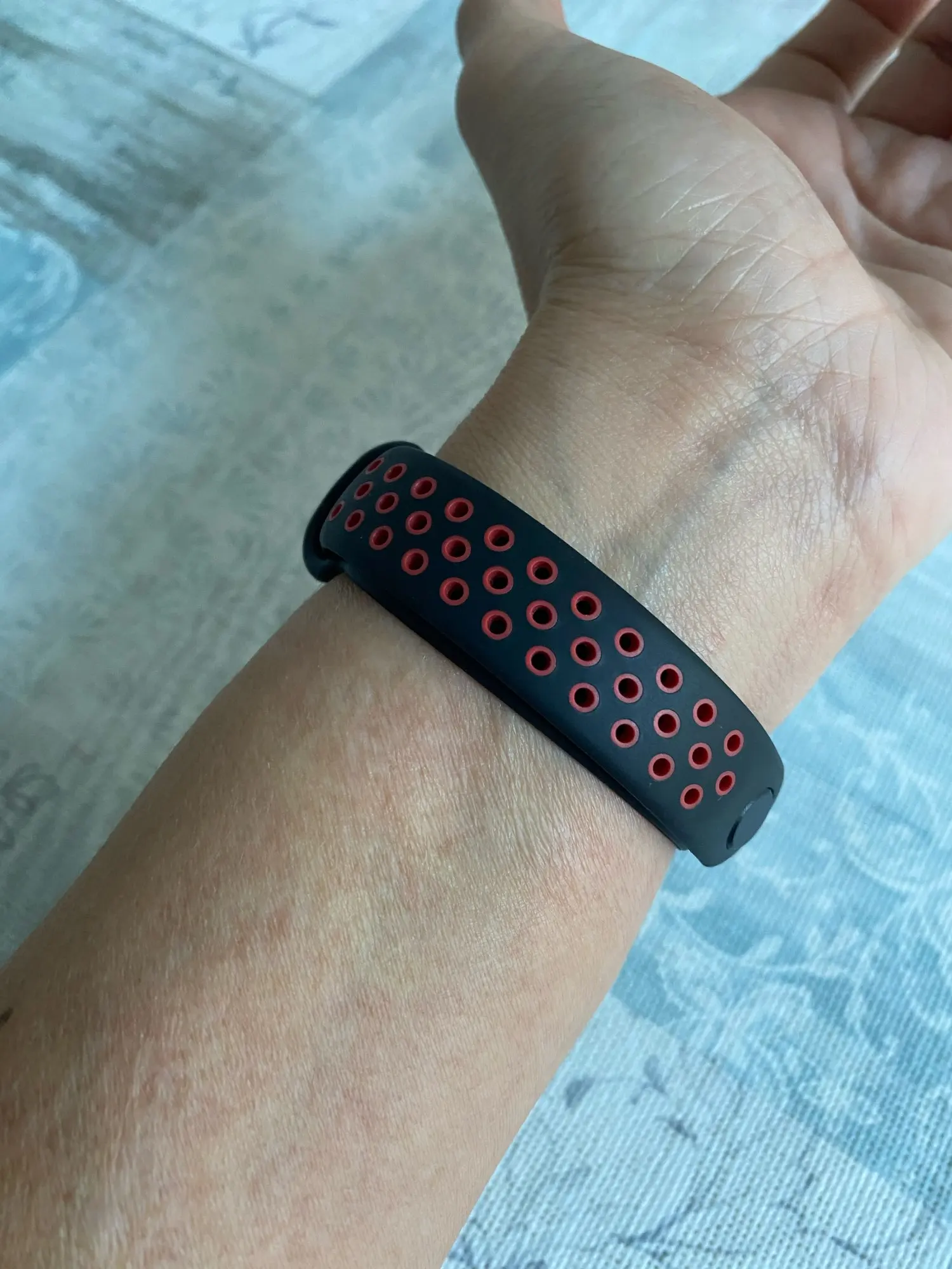 Прекрасный браслет за такие деньги (123.69 руб) Хорошего качества, родной браслет мягче и на ощупь как бархатный, в этом чувствуется пластмассовость. Крепко фиксируется. Отлично выполнен, не видно никаких дефектов. Подойдёт на очень худую женскую (детскую) ручку. У меня осталось ещё 4 деления, объём моего запястья 14 см. В РнД пришло за 15 дней. Mi band 5 прекрасно подходит, капсула прочно закреплена.