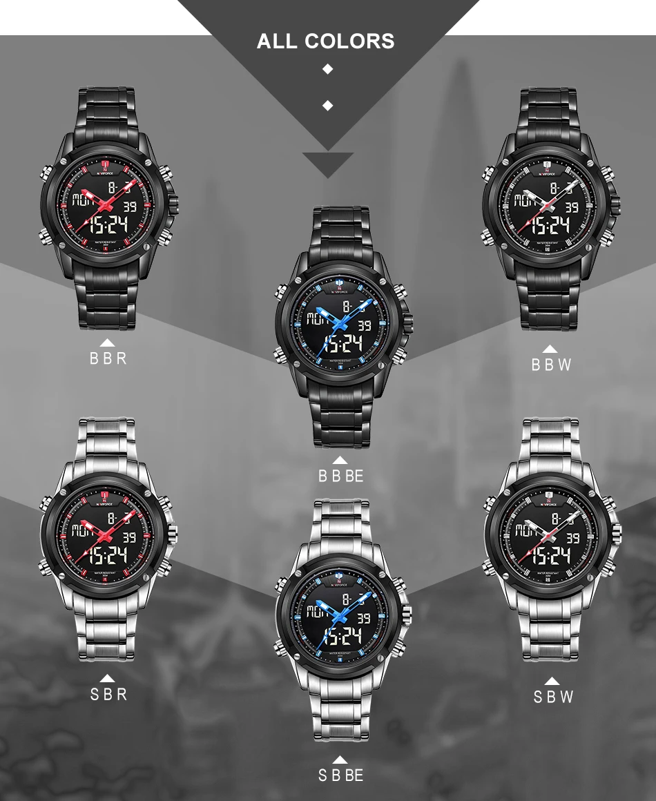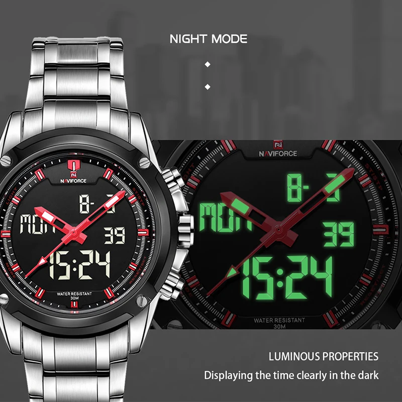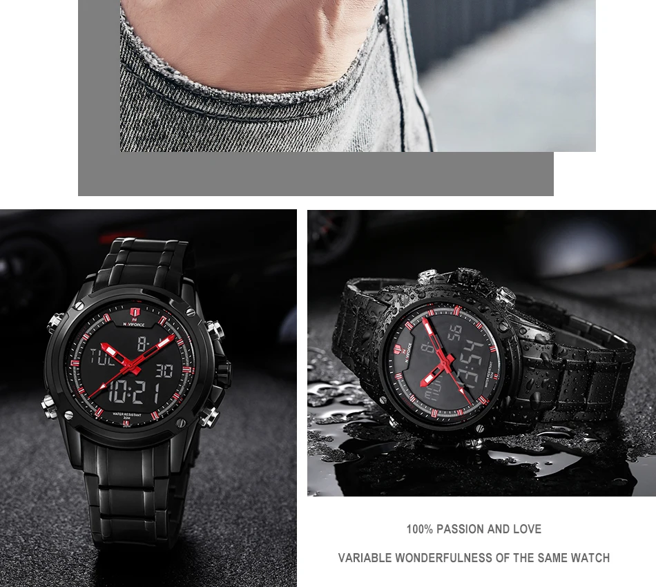 NAVIFORCE мужские спортивные цифровые часы, Роскошные военные часы, мужские кварцевые аналоговые часы с будильником, мужские водонепроницаемые наручные часы