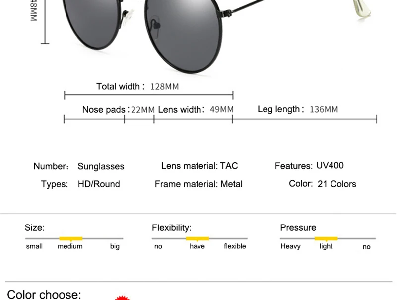 Цвет солнечных очков в продаже в наличии, вы можете заказать их напрямую. Мы поддерживаем прямую доставку, предлагаем фотографии, оптовую продажу, экспресс-доставку... пожалуйста, свяжитесь с нами. Подходит для: мужчин, женщин Материал оправы: сплав, металл Материал линз: TAC Посылка: 1 солнцезащитные очки 1 * ткань для очков 1 * сумка для очков Покупателю: * Очень быстрая отправка, мы отправим Ваш заказ в течение 3 дней или даже 1 дня, что означает, что вы быстрее получите наши товары. * Мы положим небольшой подарок в каждую упаковку, может быть, вы захотите его... * Мы тщательно проверим все очки перед отправкой. * Свяжитесь с нами в режиме реального времени, если у вас возникнут проблемы. * Заводские продажи, мы не хотим прибыли, нам нужен только объем продаж, гарантия качества.