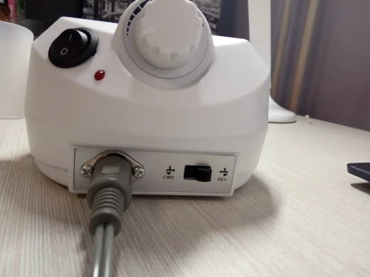 Доставка быстрая, упаковано отлично.Брала только для дома, для себя. Педаль не рабочая. Переключение на реверс работает.Ручка сильно покрывается пылью. Не шумная. Снимала гелевое покрытие с ногтей керамической фрезой и была разочарована, т.к. не заметила отличий от синего аппарата за 600 рублей, надеялась, что будет быстрей, да и ручка тяжелая. Профессиональным аппаратом не пользовалась, сравниваю только с самым дешевым китайским, которым пользовалась 5 лет без нареканий.