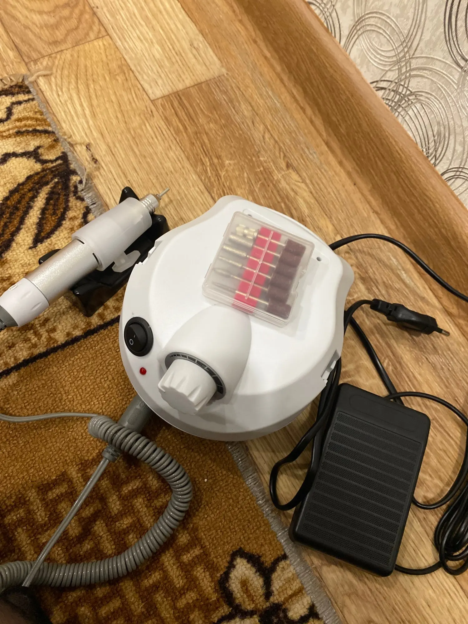 Хороший аппарат для маникюра, работает изумительно, только фрезы лучше докупить. Пришёл за неделю в СПб (СДЭК).