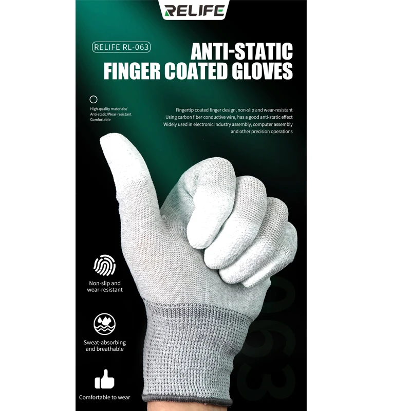RELIFE RL-063 антистатические перчатки противоскользящие ESD электронные рабочие перчатки с полиуретановым покрытием защита пальцев для ремонта компьютерного телефона