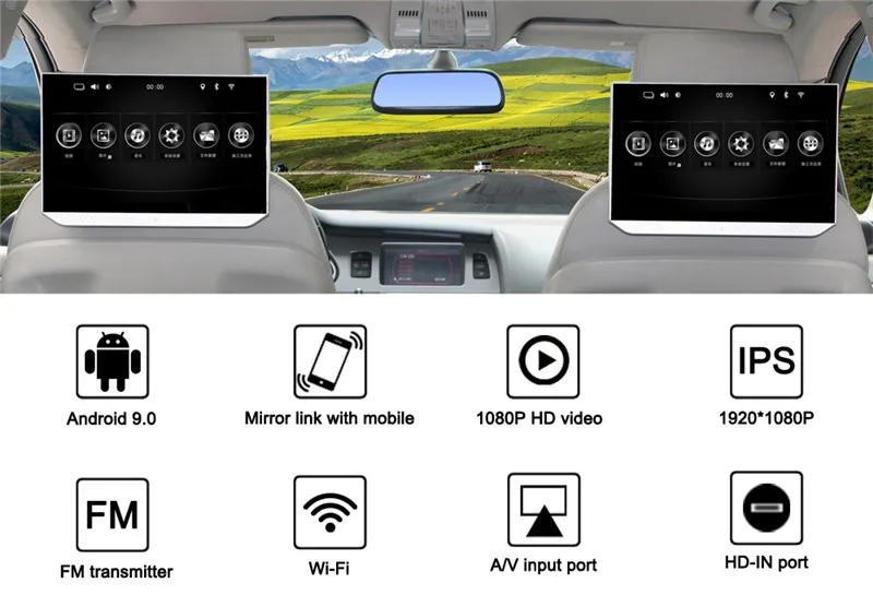 Android HDMI-совместимый автомобильный ТВ-плеер с сенсорным экраном 13,3 дюйма дисплей на подголовник BT Bluetooth USB видео FHD 1080P Mirror link