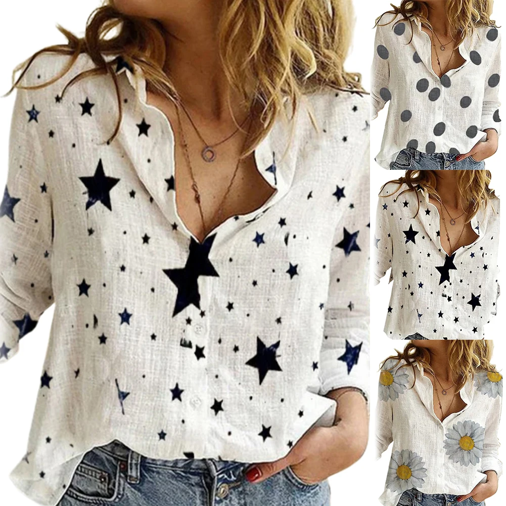 Женская модная офисная рубашка в горошек с длинным рукавом и принтом звезд, блузка-топ, женская рубашка, женская блузка, модные женские блузки