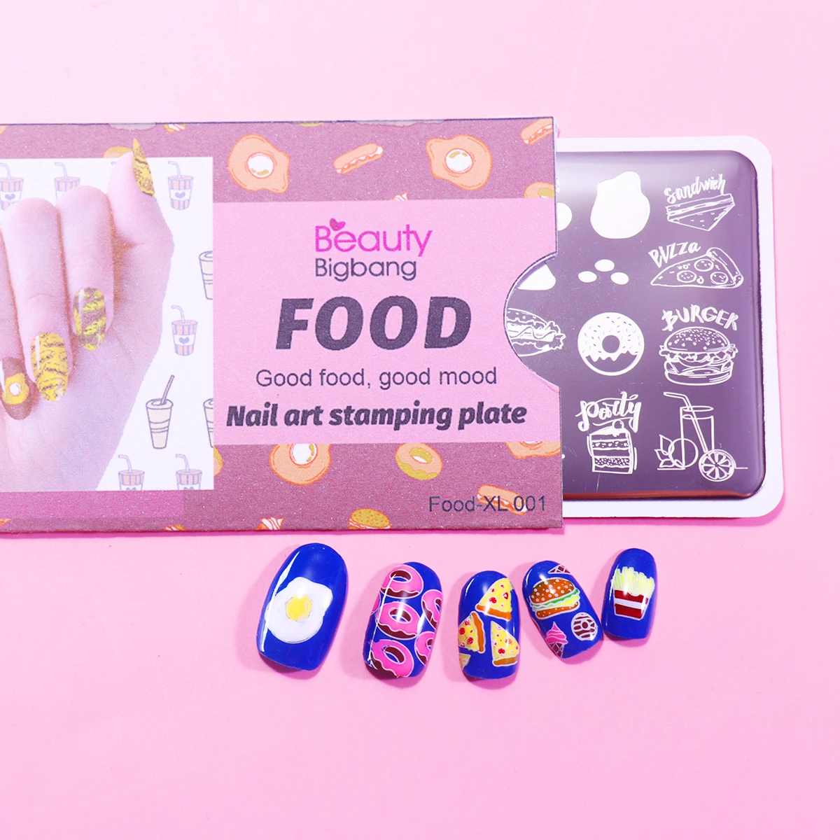 Красота большого взрыва штамповки пластины еда XL-001 Гамбург пончик хот-дог хлеб сок изображение нержавеющая сталь дизайн ногтей трафарет шаблон