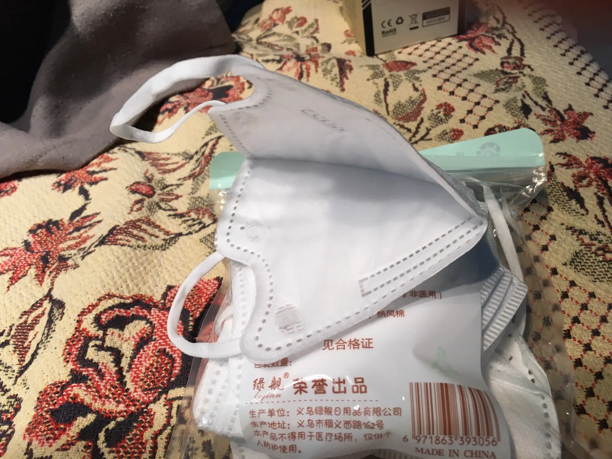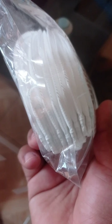 Продукт на 100% такой же, как на фото, материал такой же, как те, которые получены в любом аптеке или продаже, которые продают их. Резинки похожи на ткань, не резиновые и очень удобные, они не повреждают уши. И маска очень хорошо приспосабливается к лицу. Мой сын любит надевать его, потому что он не беспокоит его, материал очень мягкий внутри и не чешется.