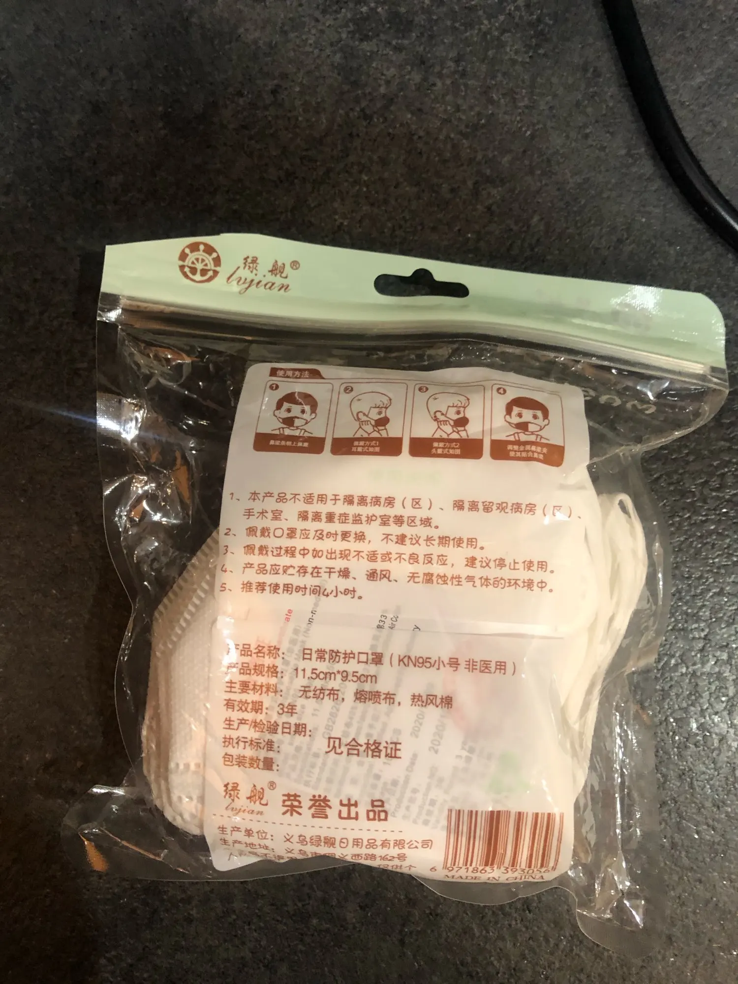 Доставка три недели, посылка отслеживалась. По плотности ок, воду держат, не выглядят тонкими. Но размер очень маленький, на фото для сравнения стандартная детская маска от другого продавца. 9-летнему худенькому ребёнку еле-еле закрывают рот, подойдут для трехлетних.