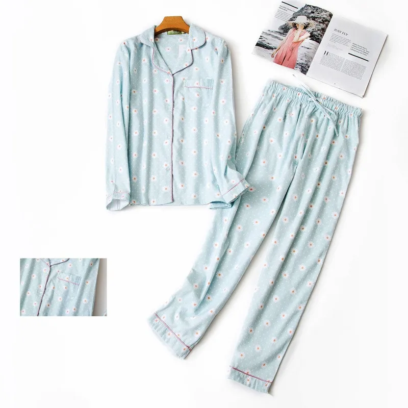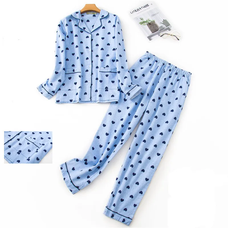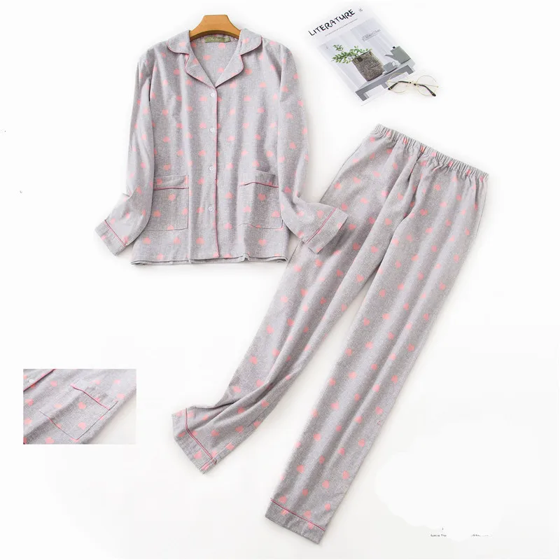 Топ, милый комплект ночного белья, 100% хлопок, зимняя женская пижама, рубашка с длинным рукавом, штаны, Повседневная теплая Домашняя одежда с рисунком