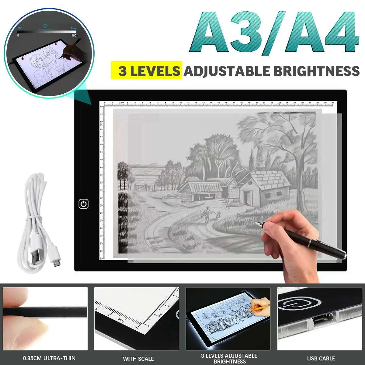 Особенности:1. Обновленная версия светильник легкий планшет имеет функцию плавной регулировки яркости! Просто Длительное нажатие на переключатель, вы можете регулировать яркость по своему желанию. Когда светильник снова включите световую панель, она покажет яркость вашего последнего использования.2. Портативный светильник дизайн светильник вес, поэтому его легко носить с собой и не беспокоить при хранении.3. Защита глаз во время отслеживания: яркий экологически чистый светодиод без мерцания, равномерный и стабильный свет позволит вам чувствовать себя комфортно во время отслеживания. Светонаправляющая пластина отфильтровала вредные лучи и защищает ваши глаза, без резкого светильник, без проблем в течение длительного времени работы.4. Питание от USB: поставляется с USB-кабелем светильник световой короб для трассировки легко включается, подключая к блоку питания, компьютеру или любому USB-порту на розетке.5. Широкое применение светильник световая панель-идеальный инструмент для набросков, рисования, 2D анимации, каллиграфии, тиснения, скрапбукинга, переноса татуировок, квилтинга, независимо от того, профессионалы или любители. Это также сказочный подарок для художников, дизайнеров и фотографов. Посылка1 Светодиодная подсветка1 * USB кабель