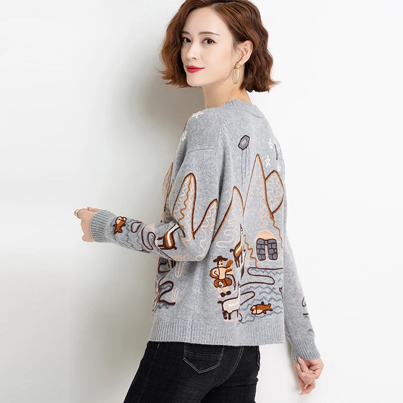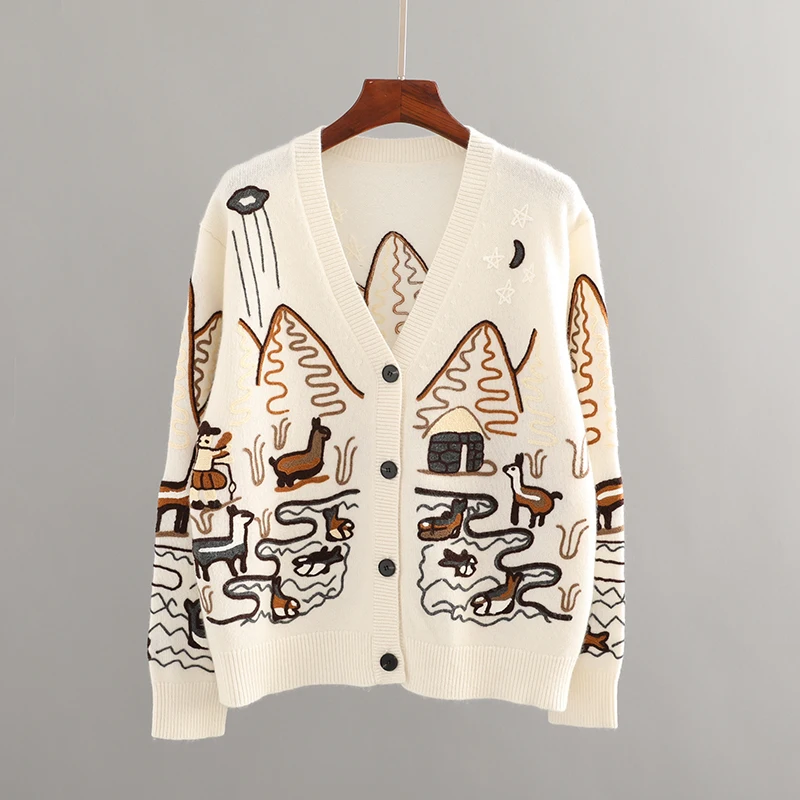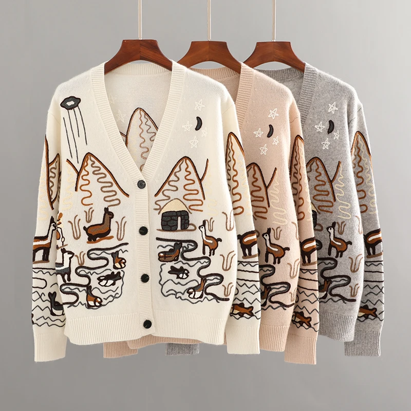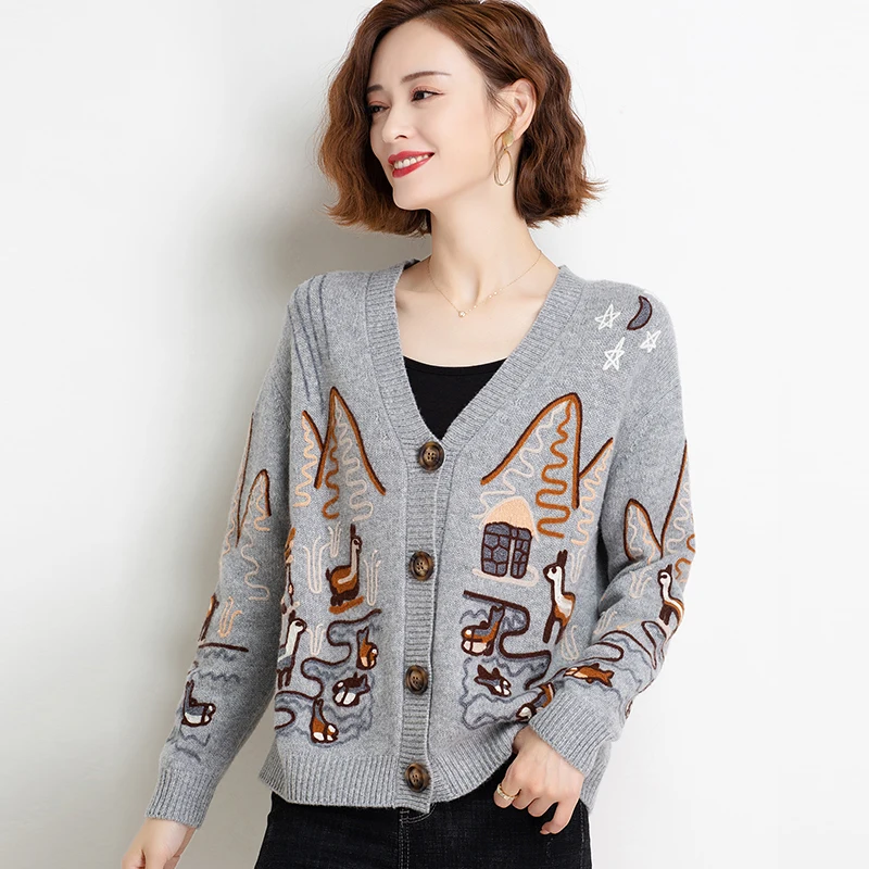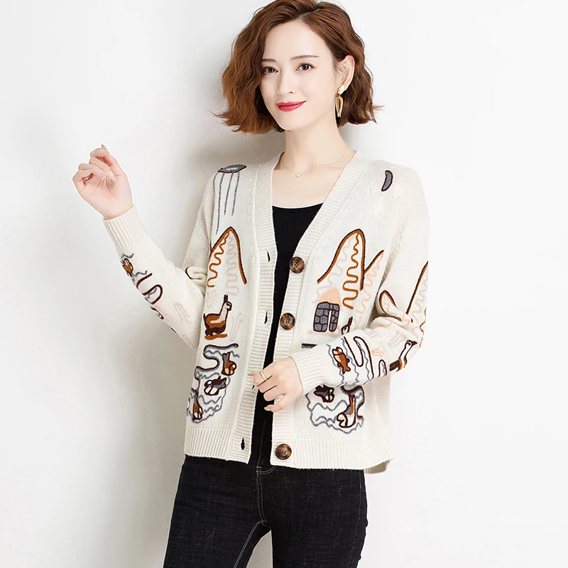 Женский трикотажный кардиган, теплый кардиган с V-образным вырезом, Осень-зима 2021