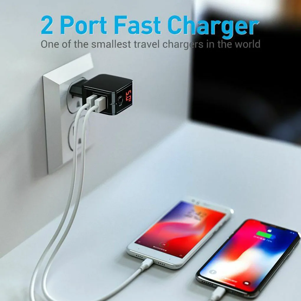 Зарядное устройство USB для путешествий имеет светодиодный дисплей, что позволяет легко узнать состояние зарядки.