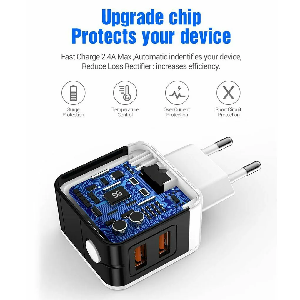Двойной usb-адаптер для зарядки smart, может распознавать любое устройство и максимизировать эффективность зарядки.