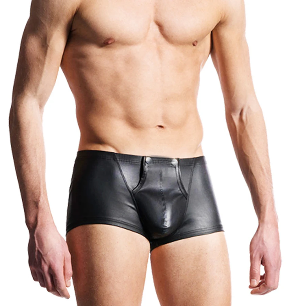 Сексуальные открытые мужские боксеры с мешочком, нижнее белье, шорты из искусственной кожи, трусы, горячие открытые мужские сексуальные