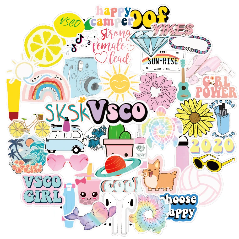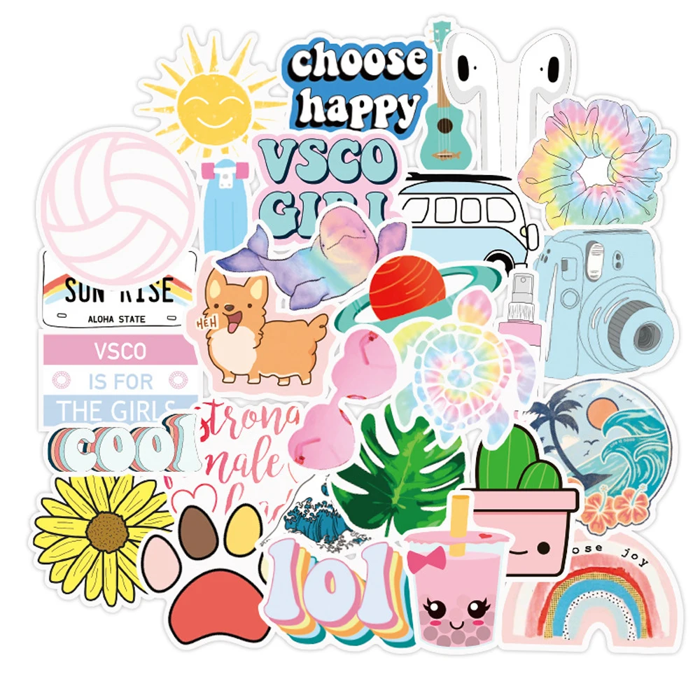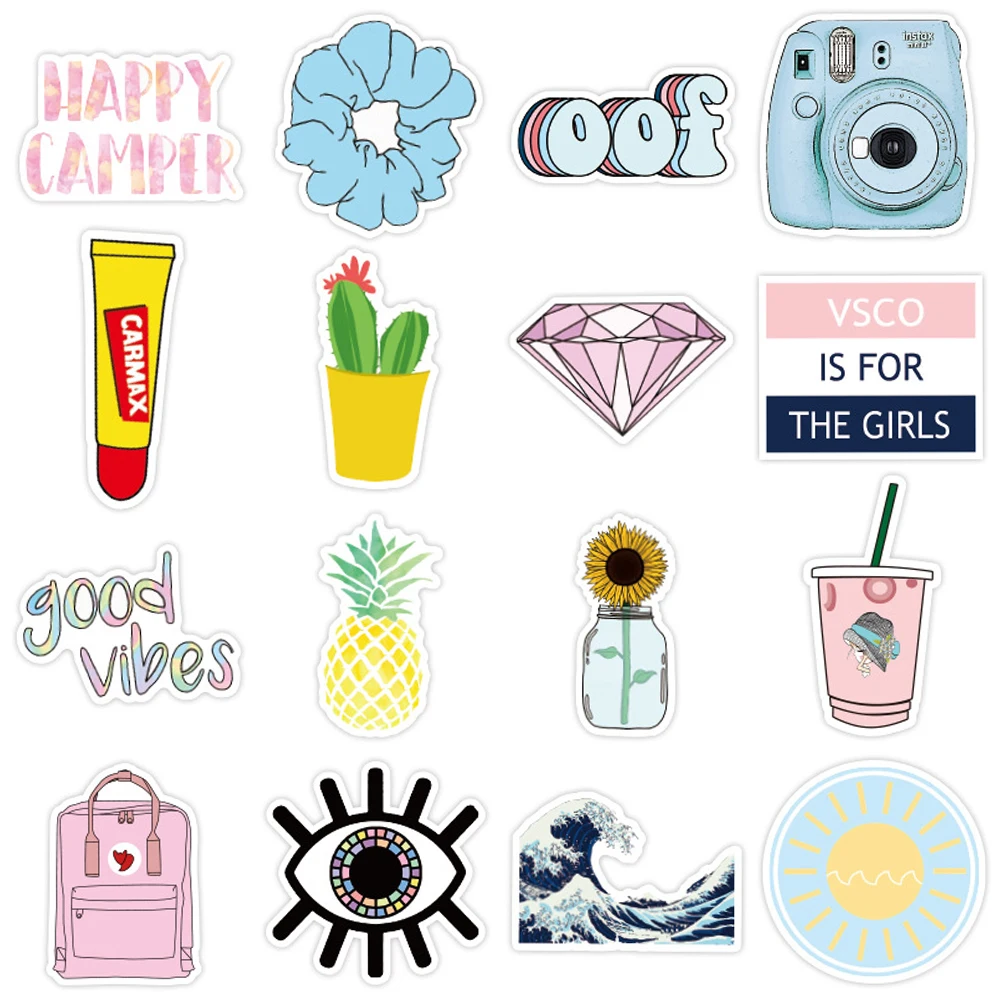 Наклейки в стиле INS Vsco для девочек, 50 шт., наклейки для ноутбука, мотоцикла, скейтборда, чемодана, холодильника, ноутбука, игрушечный ноутбук