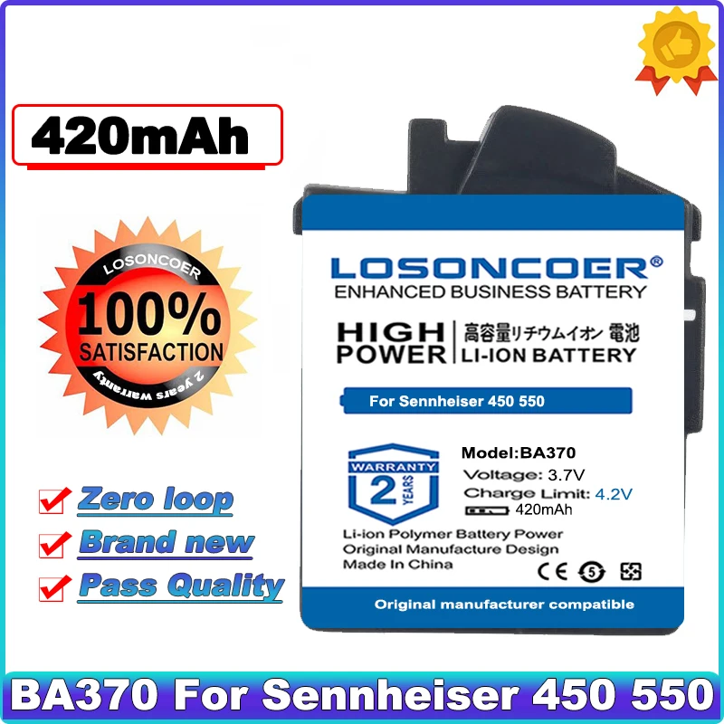Аккумулятор высокой емкости LOSONCOER 420 мАч BA370 для Sennheiser 450 ,550 , MM400, PX210BT, PX360,360BT, PXC310 PXC 310 BT MM 400 450
