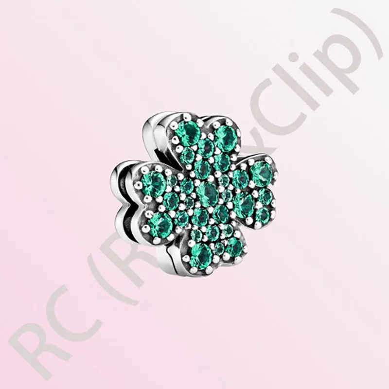 2020 Новое поступление серебряные бусины 925 пробы со стразами четырехлистный клевер клипсы, очаровательный, подрходит к оригиналу Pandora браслетов Reflexions ювелирные изделия