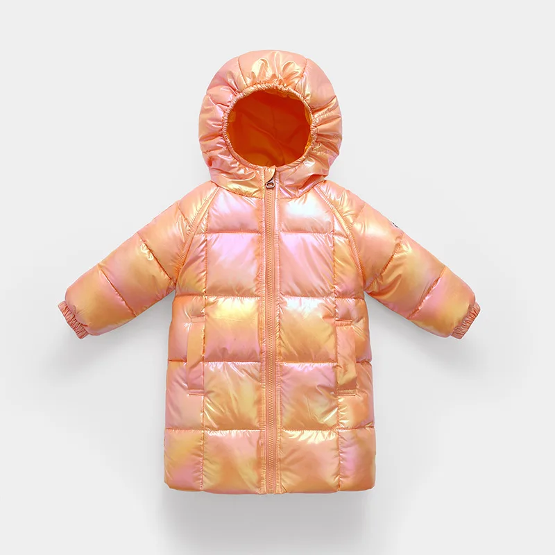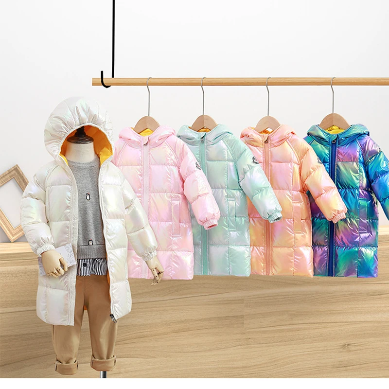 2020 новое зимнее детское яркое пуховое пальто теплая Длинная Верхняя одежда для маленьких мальчиков и девочек модные утепленные куртки с капюшоном на молнии для детей 2-8 лет