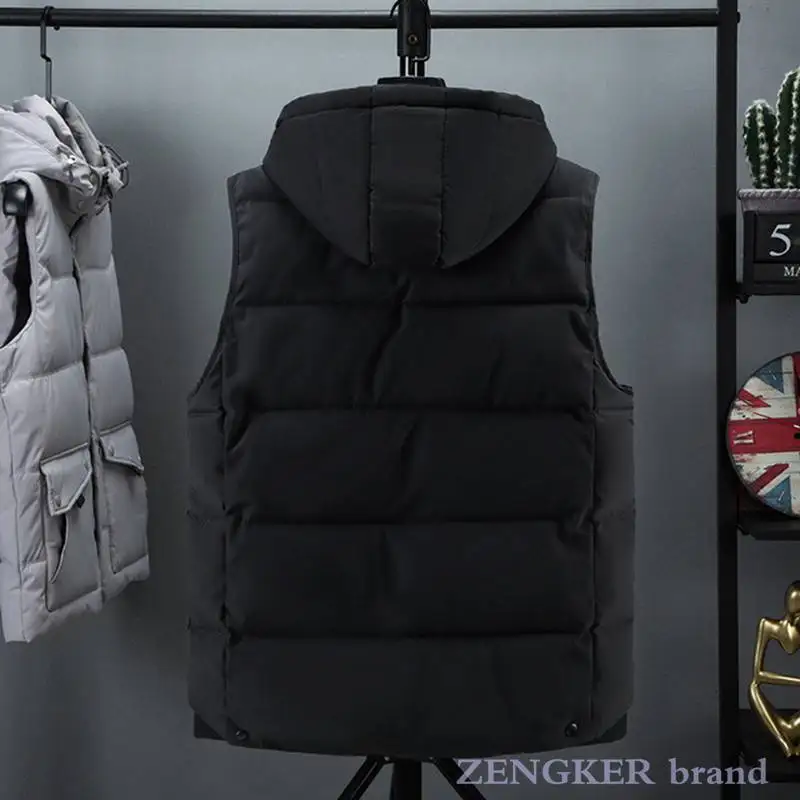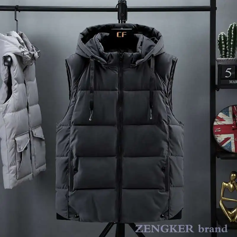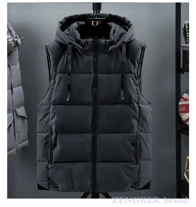 Жилет Мужской Хлопковый очень большого размера, съемный капюшон, сохраняет тепло, уличная одежда, осень-зима