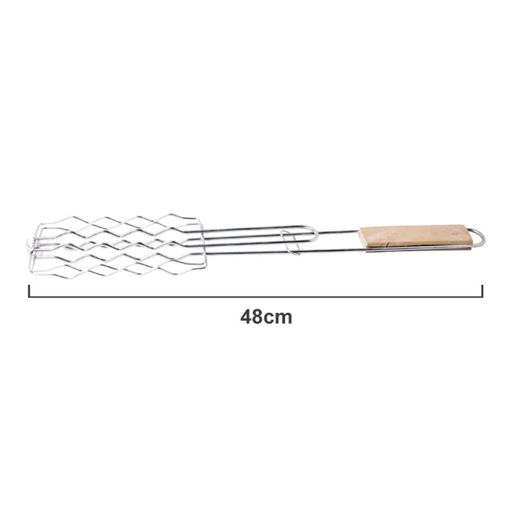 Проволочная сетка для барбекю, полка с деревянной ручкой, антипригарный зажим для колбасы из нержавеющей стали