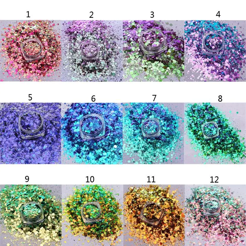 12 видов цветов Волшебные хамелеоны пайетки облако пайетки порошок неправильной формы для дизайна ногтей блестящие смолы пигментные блестки шелковые ювелирные изделия