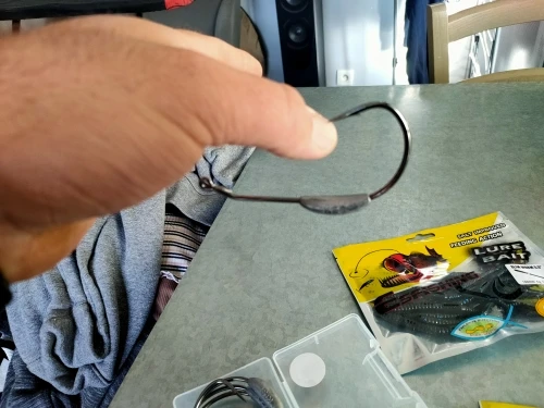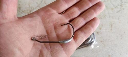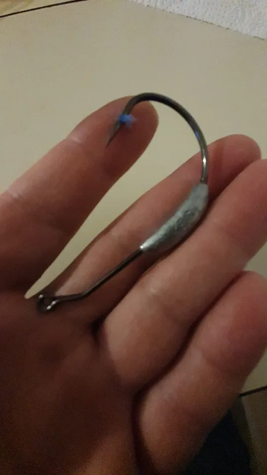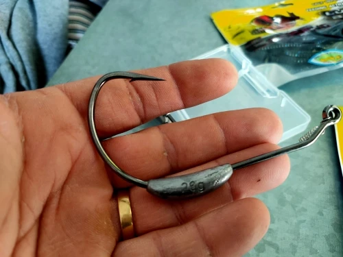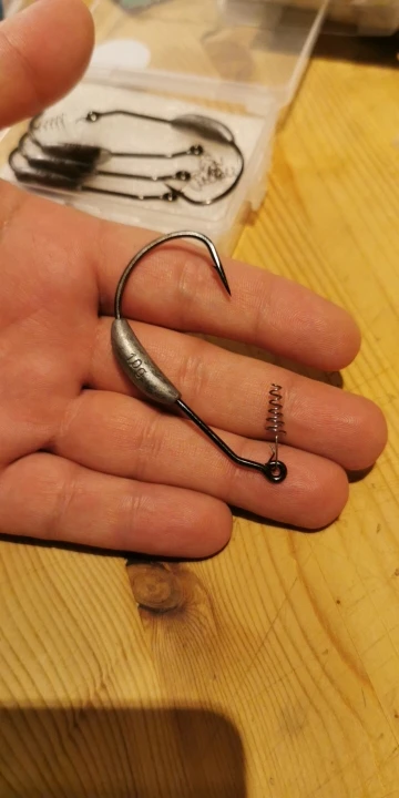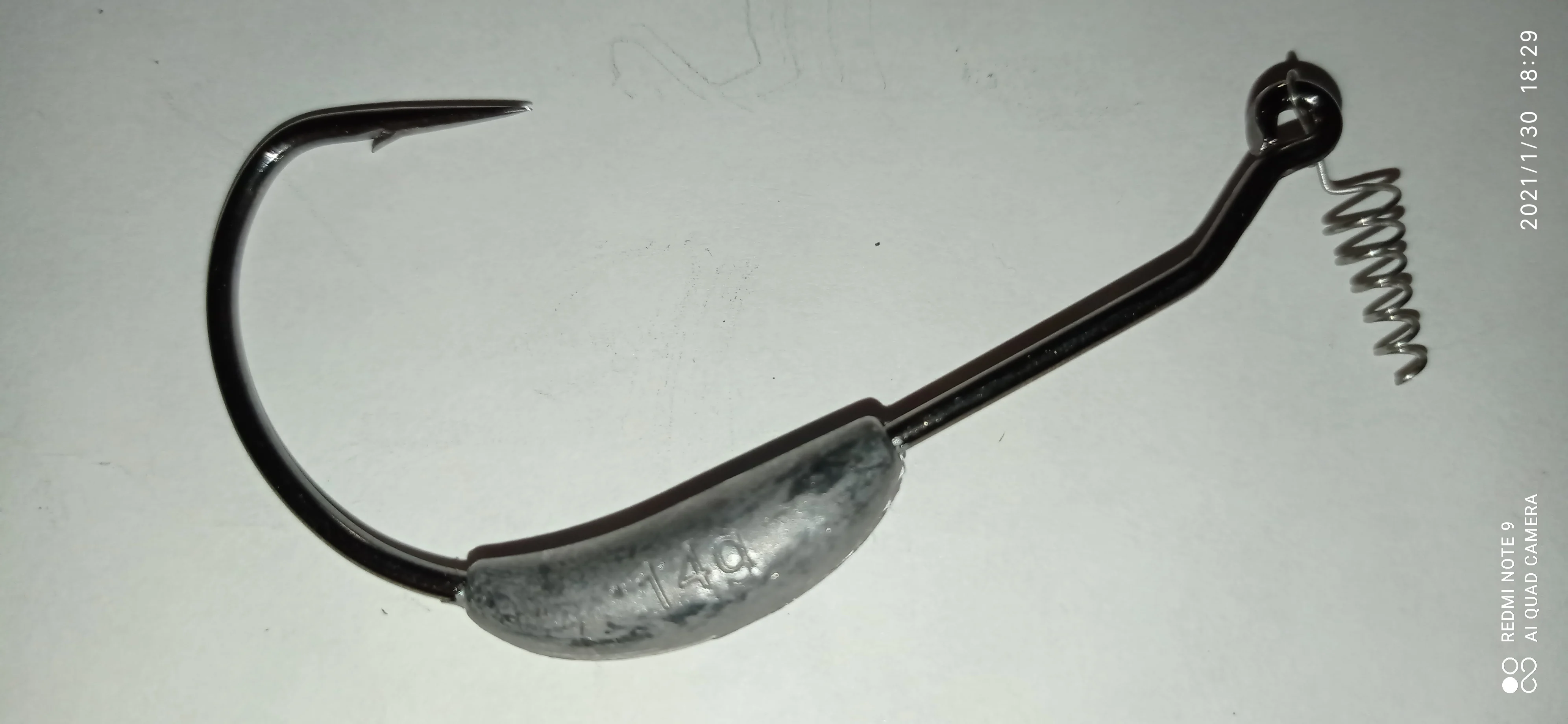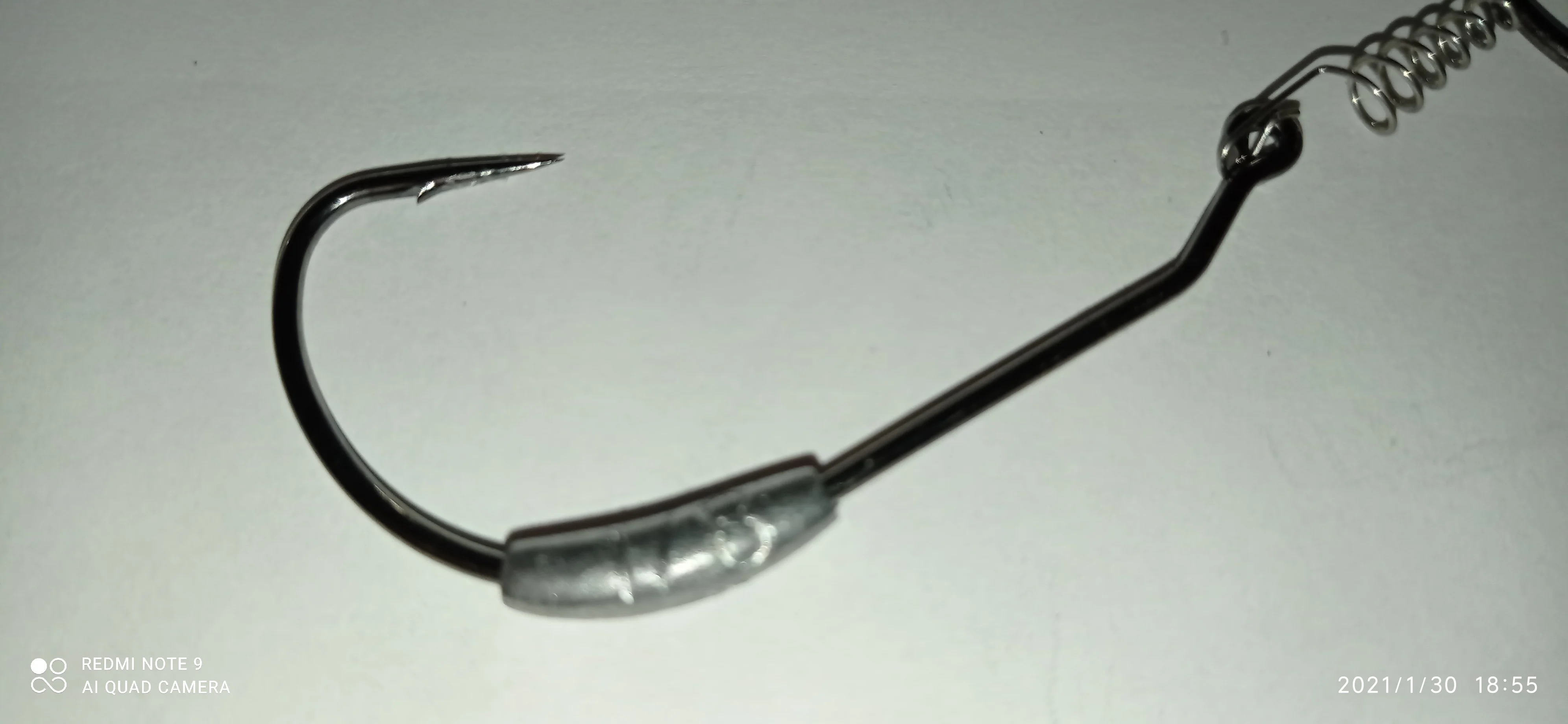 Хороший Техасский крюк. Вес хорошо балансирует рыбу и позволяет приманке (от 100 до 130 мм) плавать около 20 см под водой