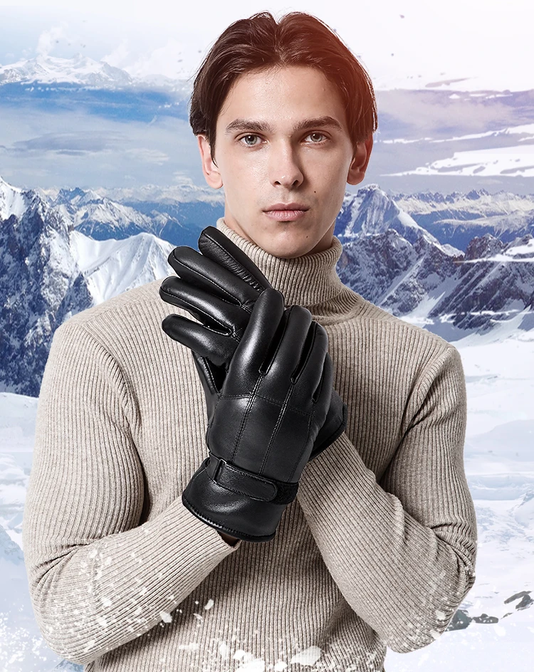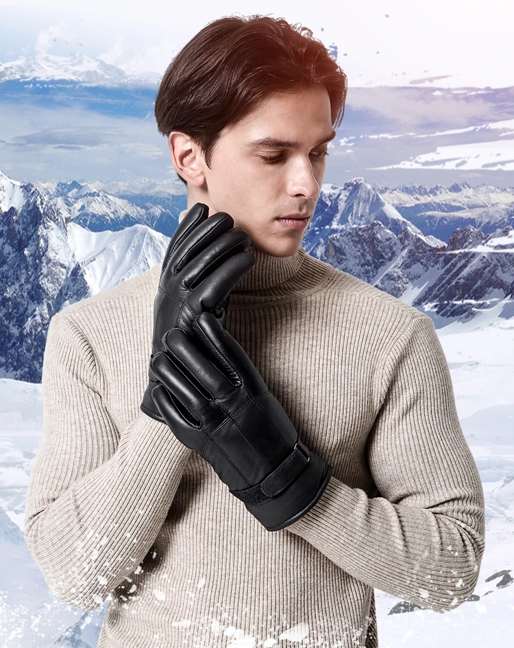 Зимние теплые перчатки из натуральной кожи для мужчин уличные водон...