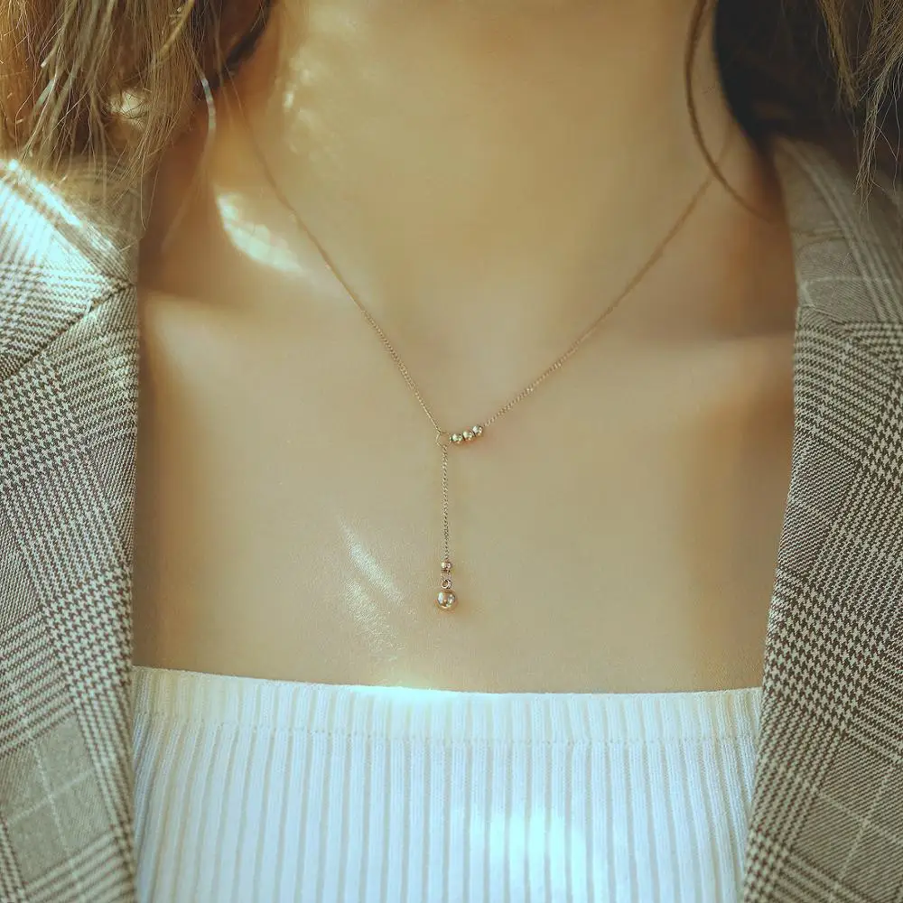 Ожерелье из титановой стали, с подвеской в виде бусин, розовое золото