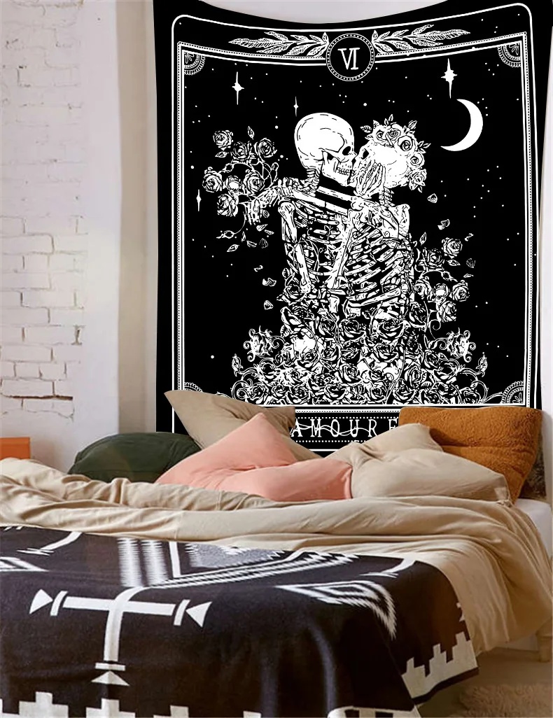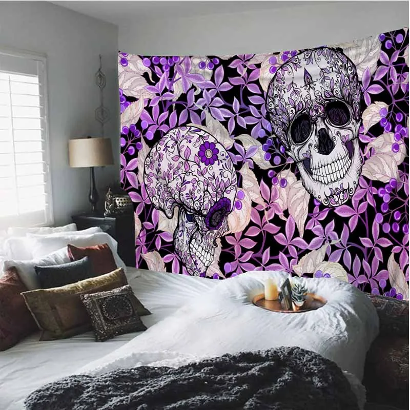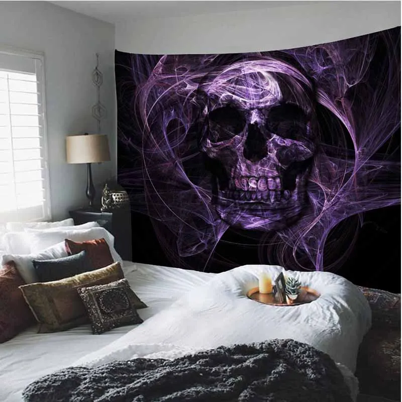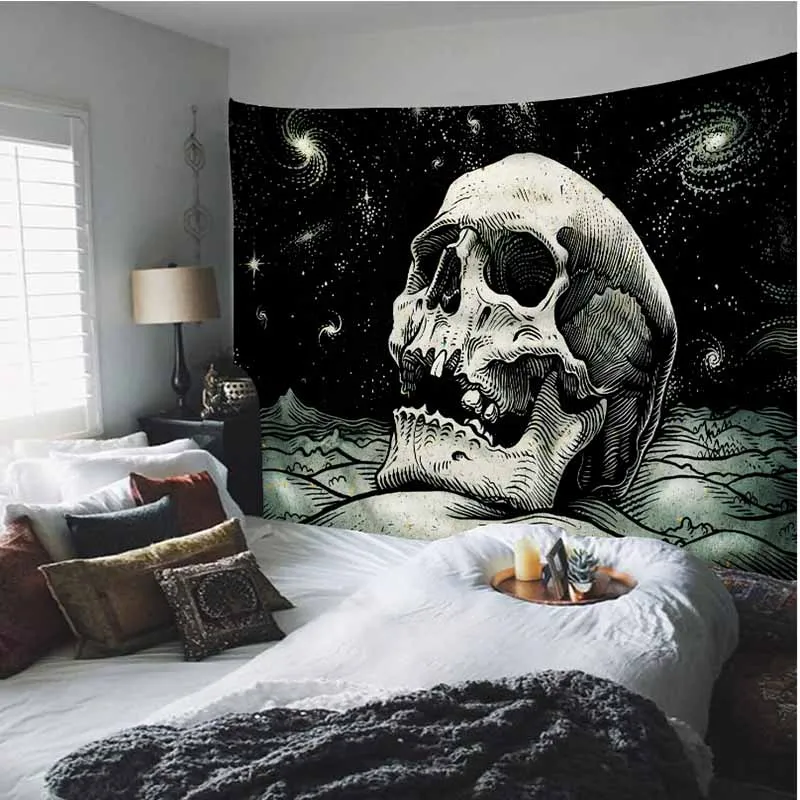 Психоделический гобелен с черным черепом, настенный гобелен с рисунком черепа, декор в общежитии, гобелен в стиле хиппи, настенная ткань, одеяло, настенный гобелен