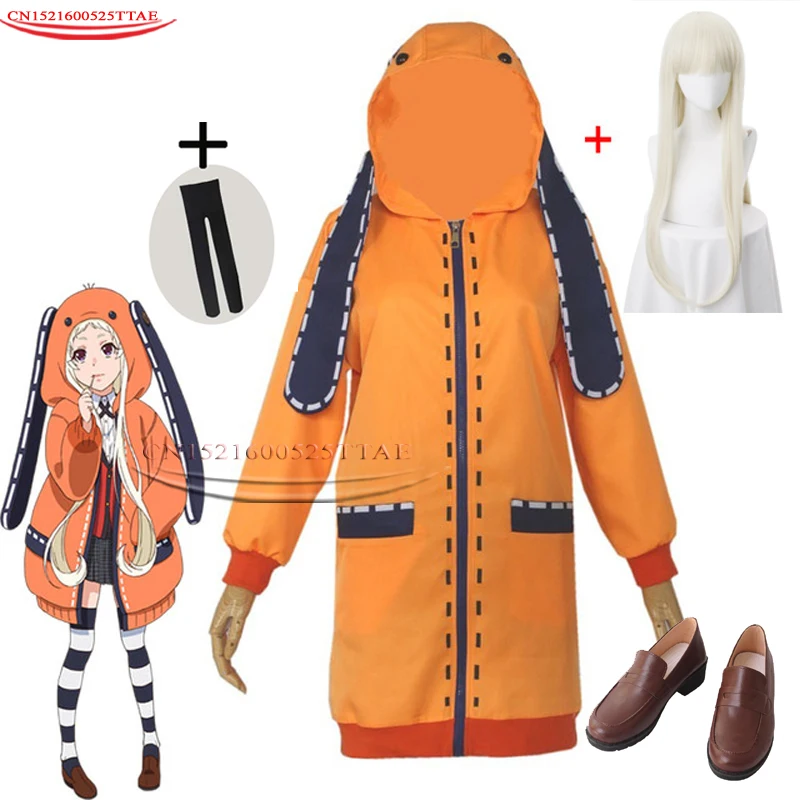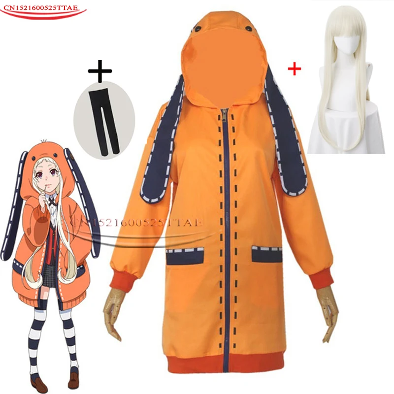 Костюм для косплея аниме Kakegurui, компульсивный геймбер, худи Runa Yomotsuki для женщин и девочек, пальто, Оранжевая Куртка с носками, парики для косплея