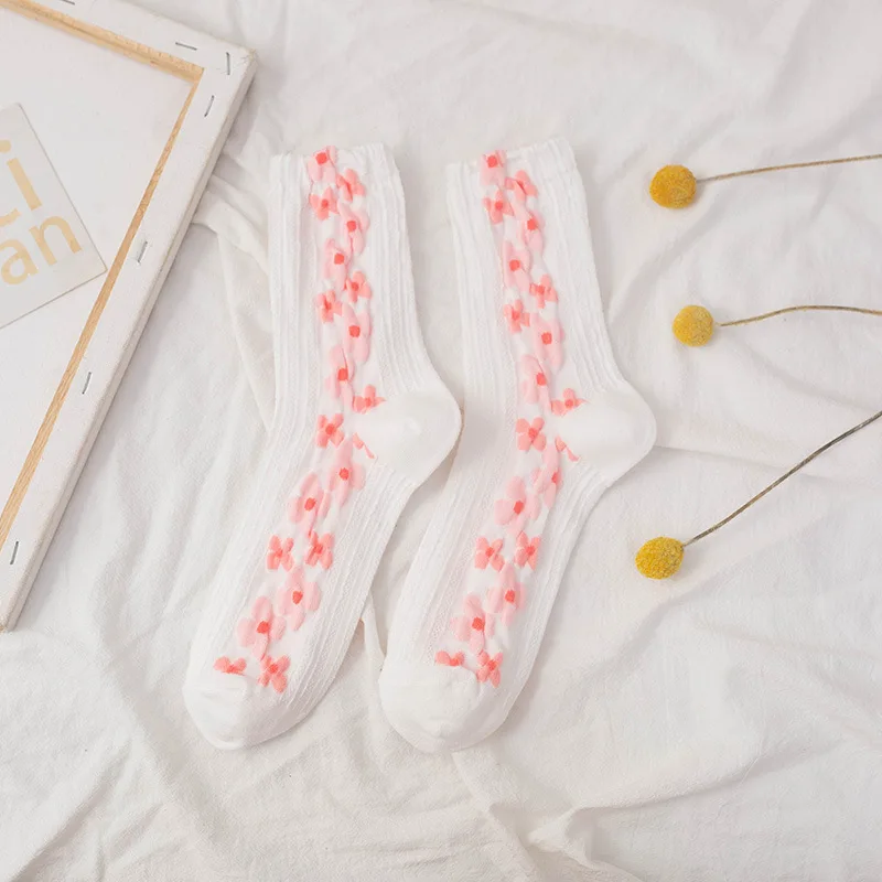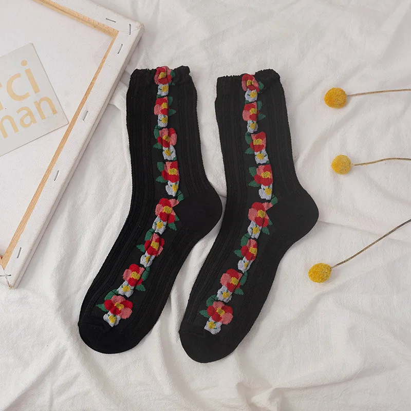 Новинка, Чулки с цветочным рисунком, женские мягкие гольфы средней длины, милые японские Лолиты, четыре сезона, осень и зима, модные чулки INS