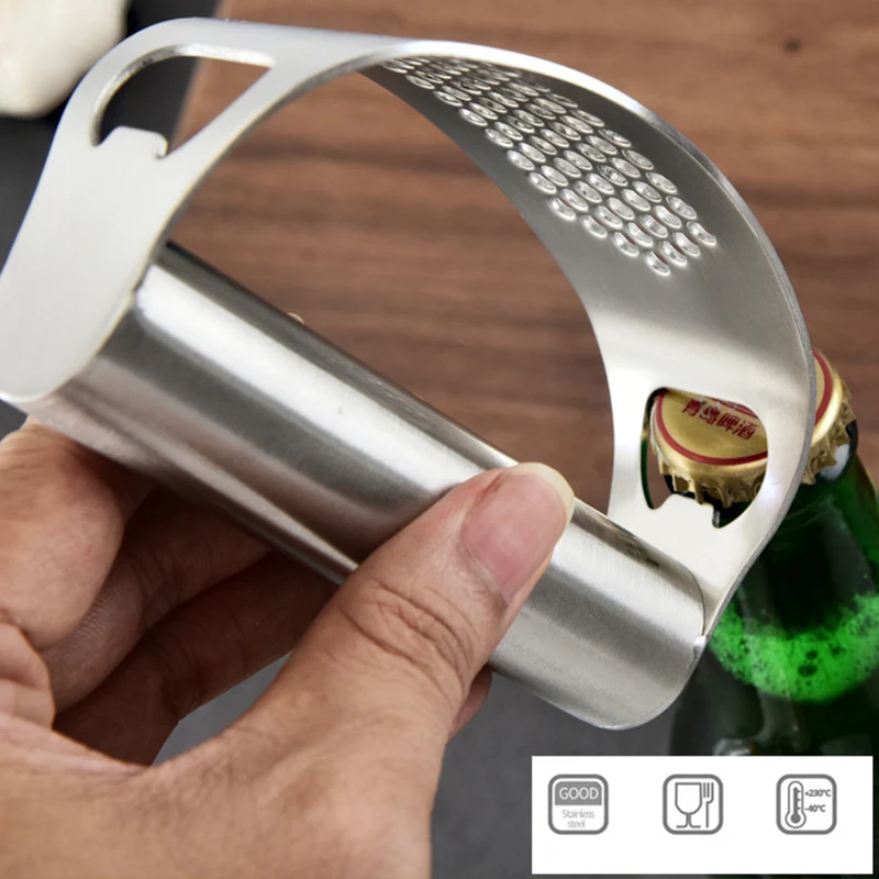 100% нержавеющая сталь Чеснок Пресс рокер, чеснок рокер дробилка Чеснок Чоппер пресс-Измельчитель Пресс, кухня давилка чеснока с функцией открывания бутылок