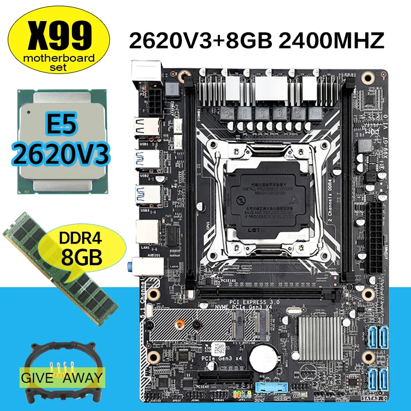 Игровая материнская плата X99 GT с E5 2620 V3 1 шт. 8 Гб 2400 МГц DDR4 память USB3.0 NVME M.2 Wifi слот