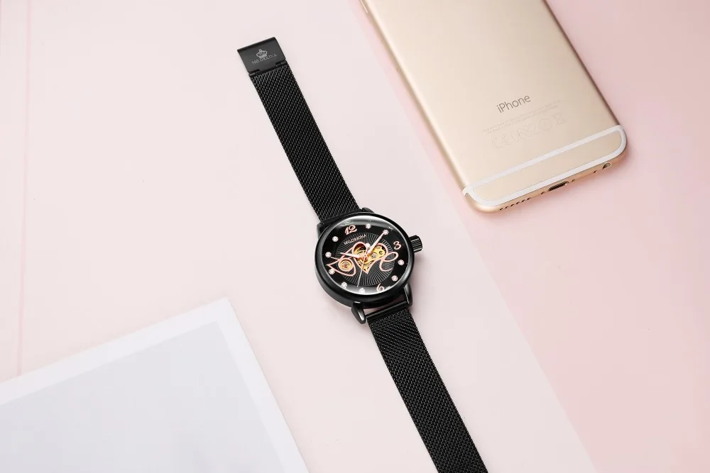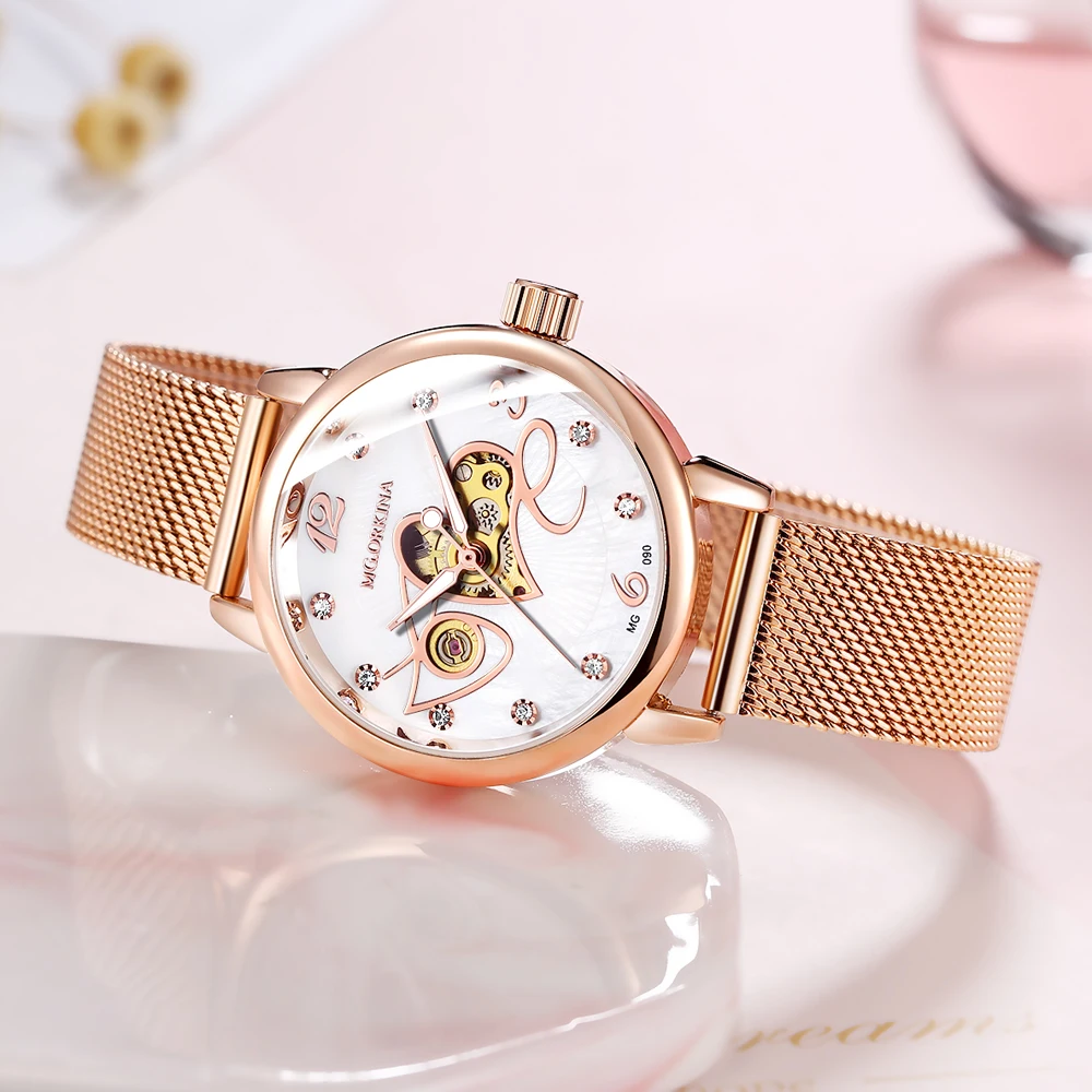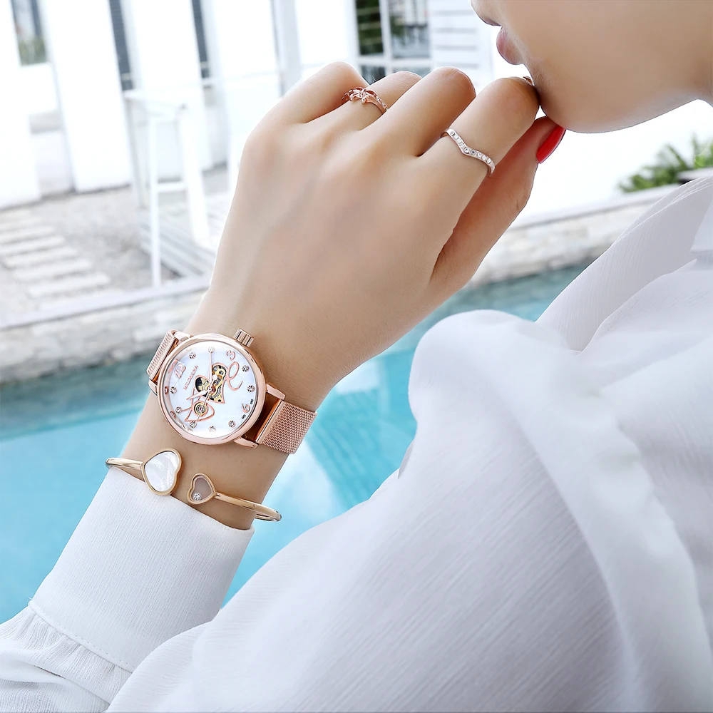 Женские часы из розового золота, женские часы 2021, женские модные механические часы с сетчатым ремешком, Роскошные наручные часы, женские часы