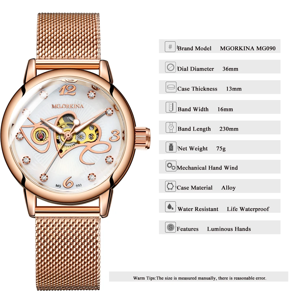 Женские часы, розовое золото, Montre Femme 2020, женские сетчатые часы с ремешком, модные механические часы, para mujer, Роскошные наручные часы, reloj mujer