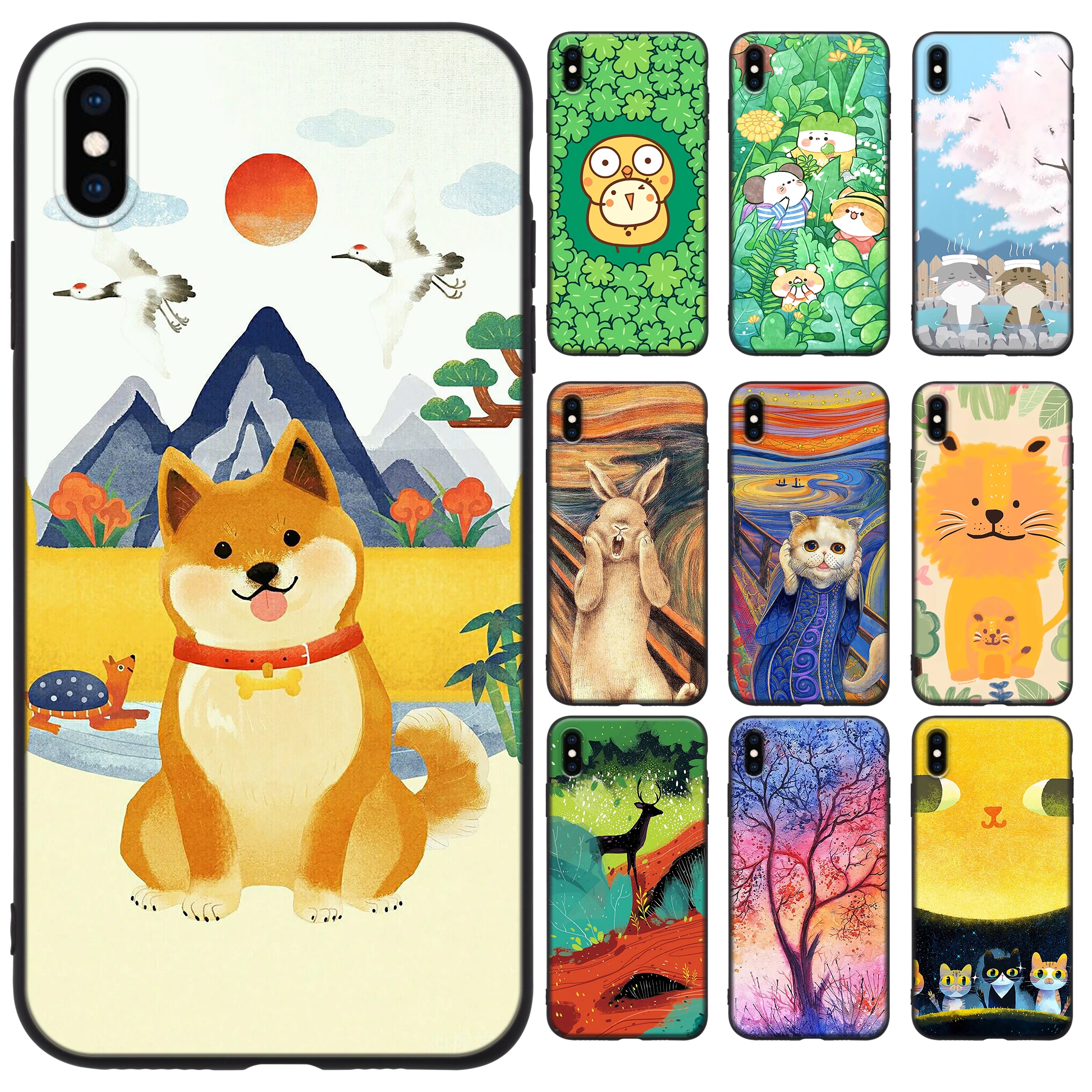 Чехол для iPhone 11 Pro Max XR Xs 5 5s 6 6s 7 8 Plus SE SE2 2020 милый чехол из ТПУ с изображением собаки Сиба-ину льва кролика акварели черный чехол