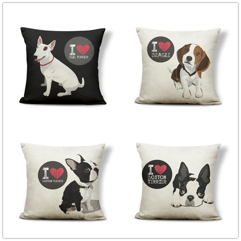 Наволочки с изображением Бультерьера, Бостон-терьера, боксерская собака, наволочки, бульдог, кошка, чихуахуа, добермен, домашний декор 43 см