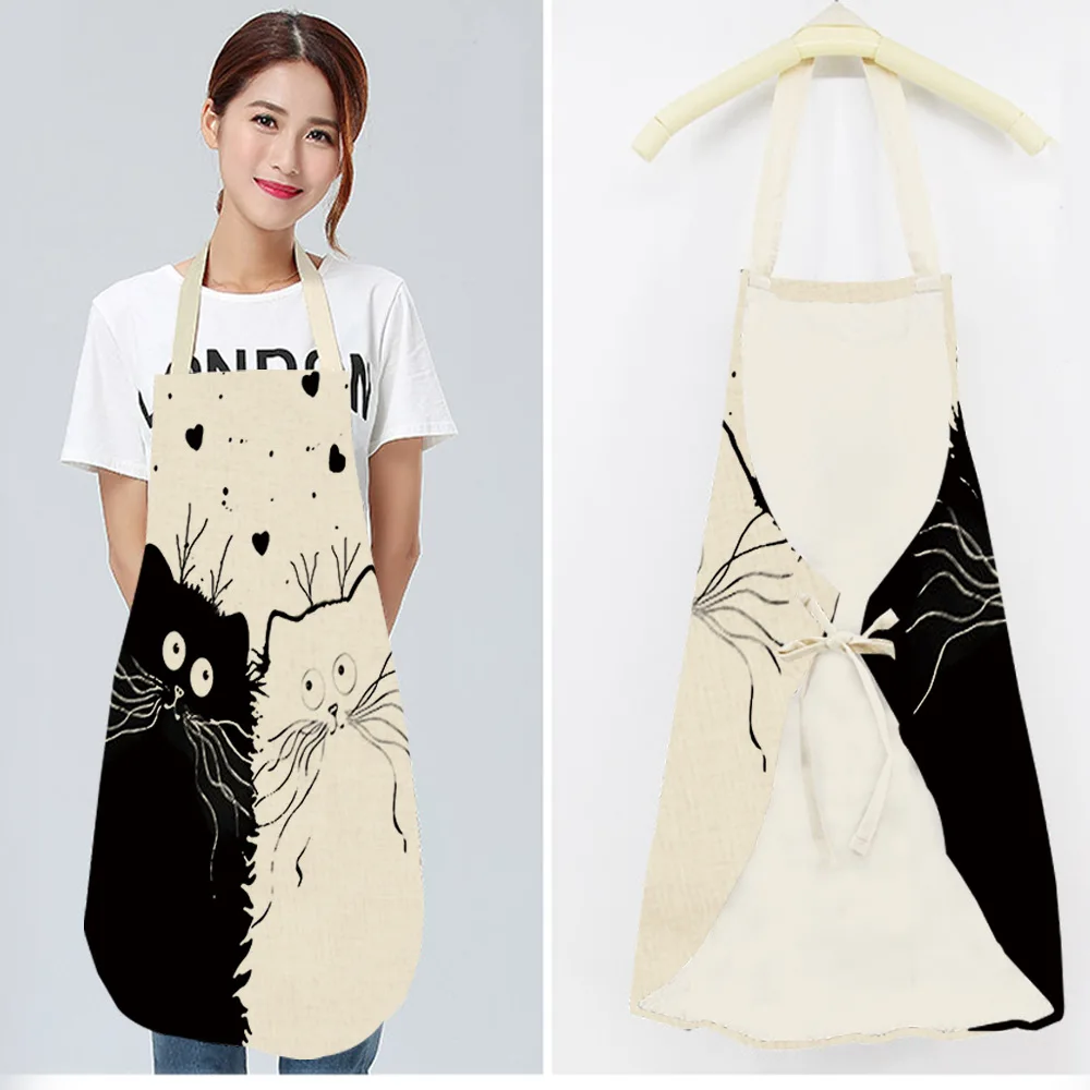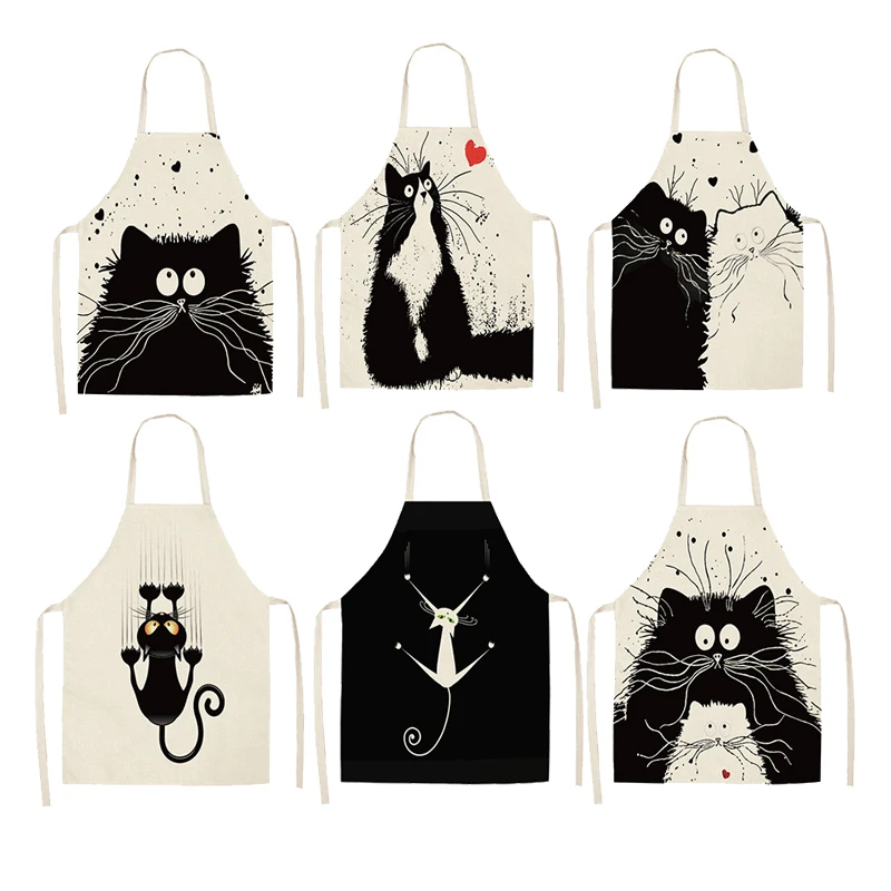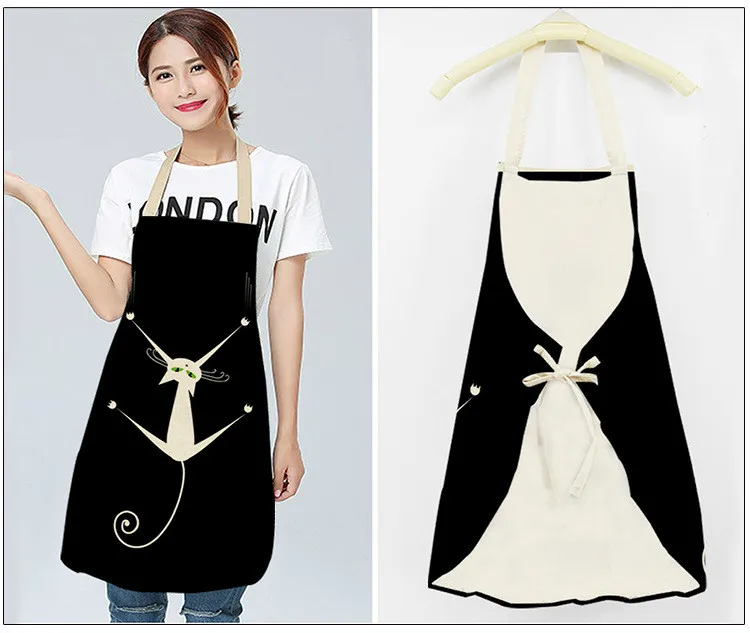 фартук добивка Черные Симпатичные фартуки из хлопка и льна с принто...