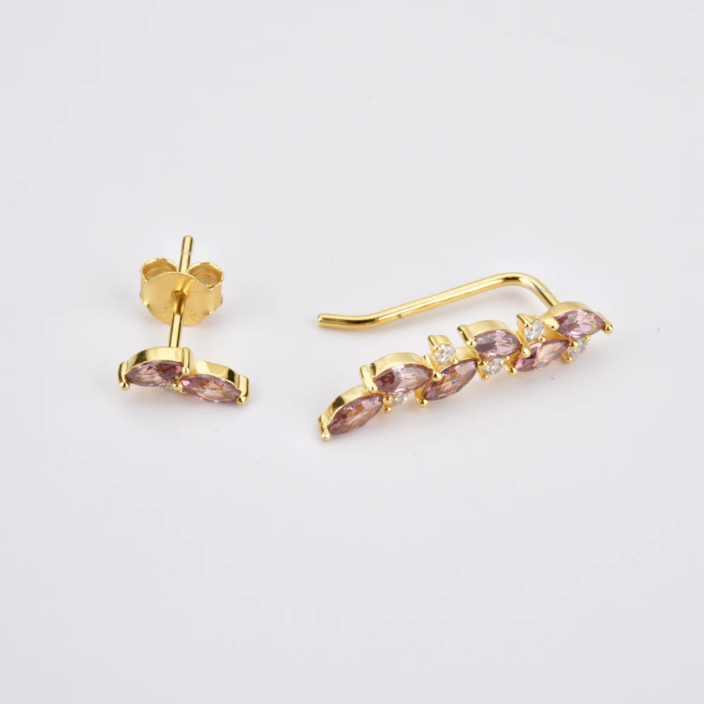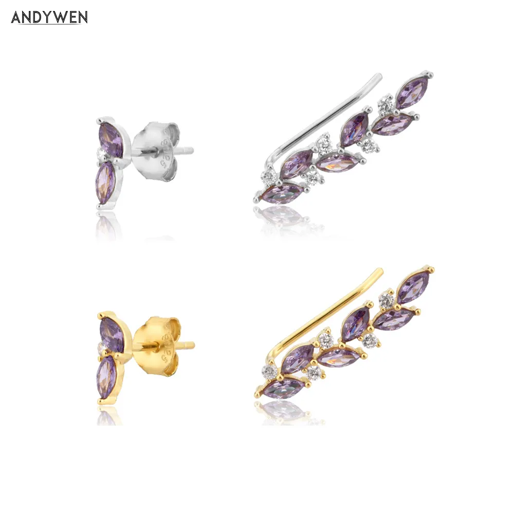 Серьги-гвоздики ANDYWEN из стерлингового серебра 925 пробы с золотистыми и фиолетовыми молочьими камнями неправильной формы, модные украшения для пирсинга