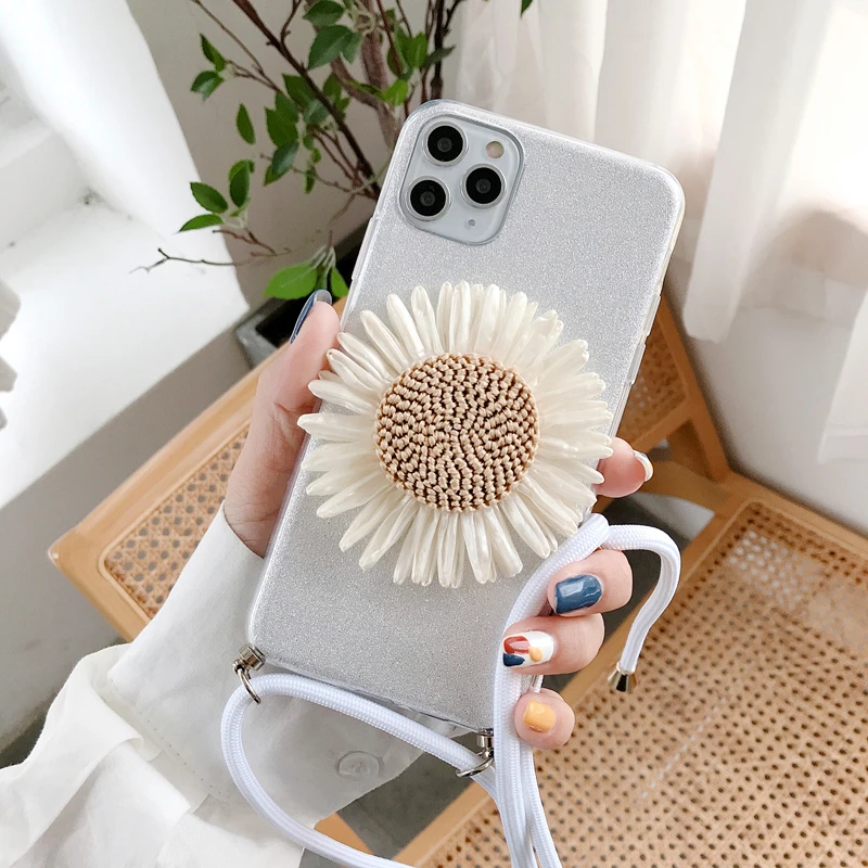 Ремешок из импортного ТПУ и силикона чехол для телефона, с ремешком и защитой от падения, соломенная шляпа с цветком, подходит для iPhone 7-iPhone 11Pro