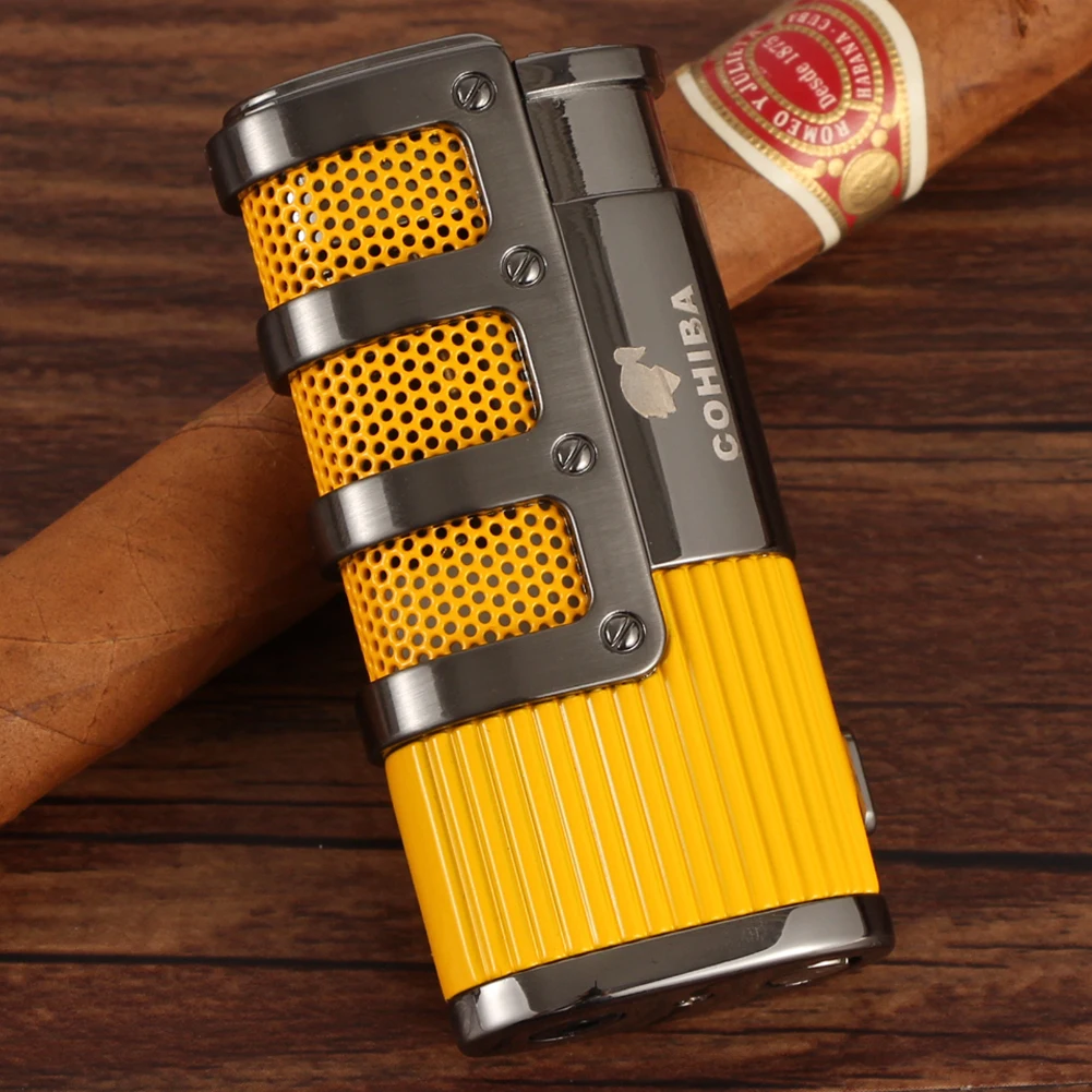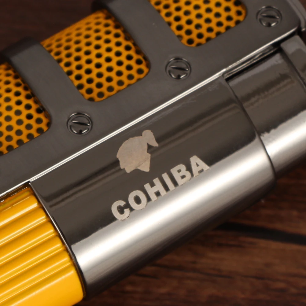 Металлическая зажигалка для сигар COHIBA, 3 струйных синих стандарта, встроенный дырокол для сигар