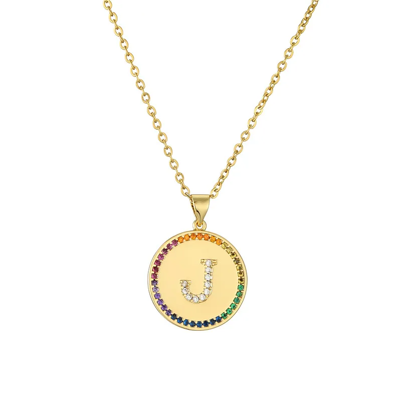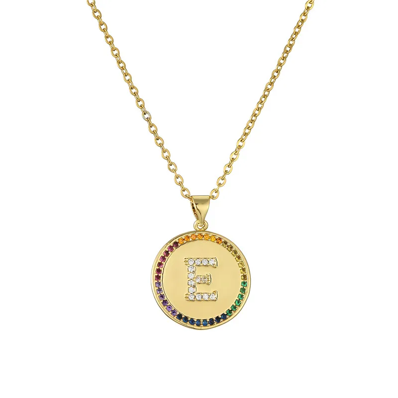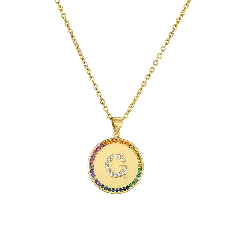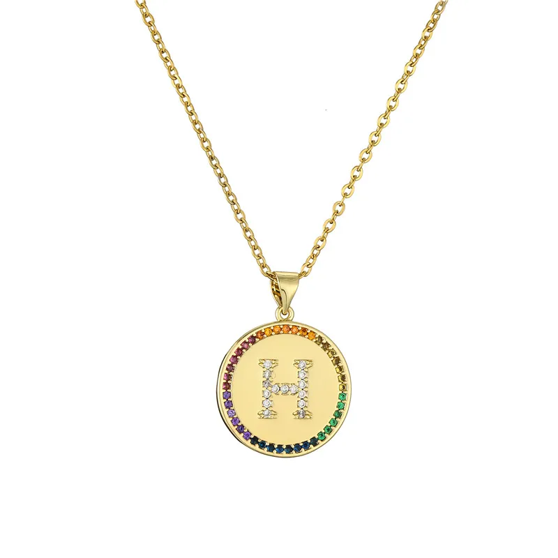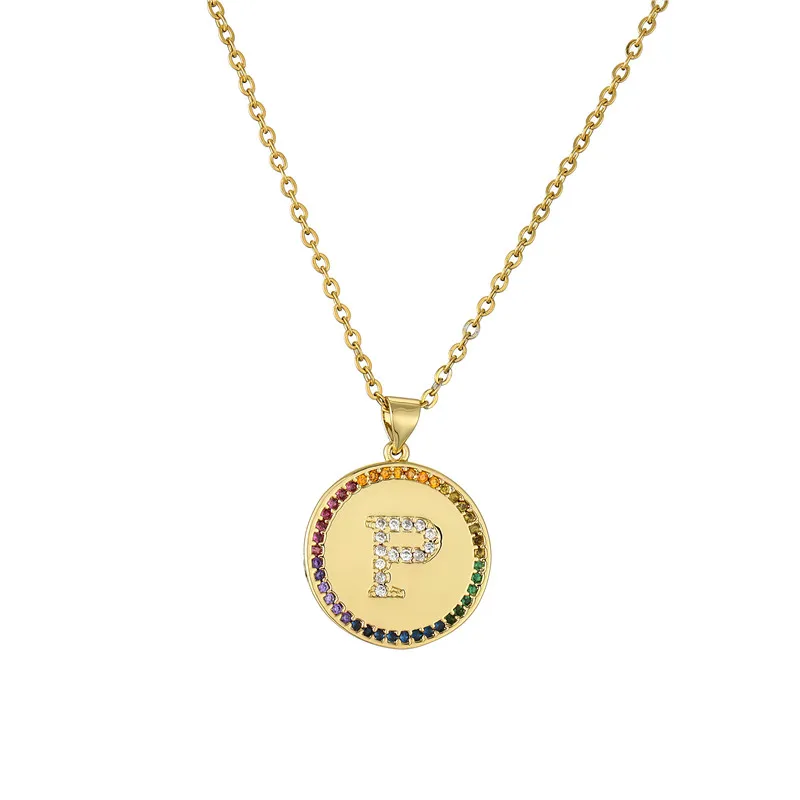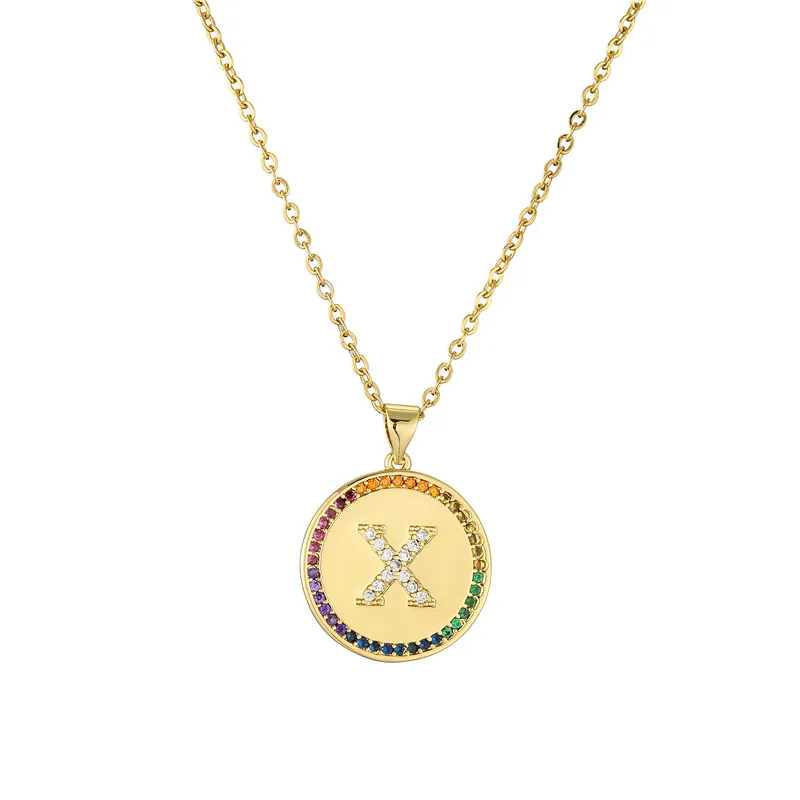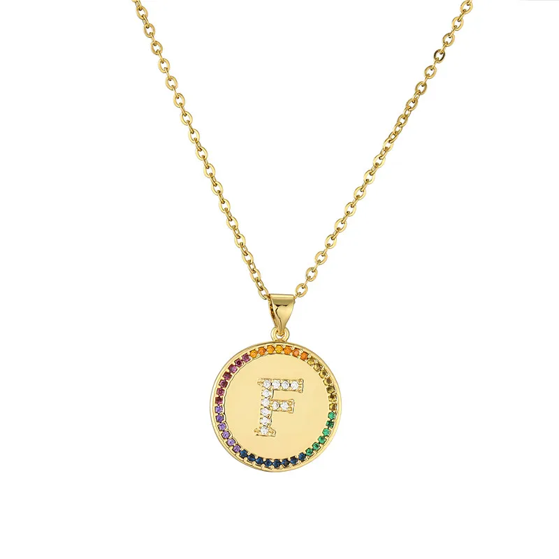 Ожерелье с подвеской в виде крошечной Золотой буквы для женщин и мужчин, радужного цвета, CZ, A-Z алфавит, монета, ожерелье, ювелирные изделия, рождественские подарки
