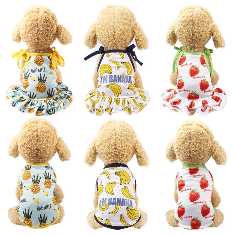 Одежда для маленьких собак с принтом фруктов, летнее платье, милое платье, одежда для щенков, одежда для чихуахуа, забавная одежда для домашних животных