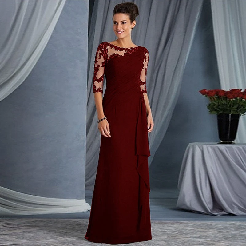 Шифоновое платье для матери невесты, с рукавом 34 и аппликацией