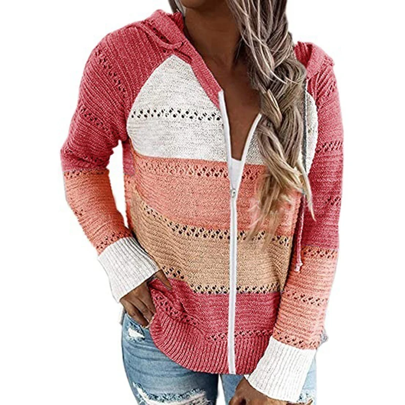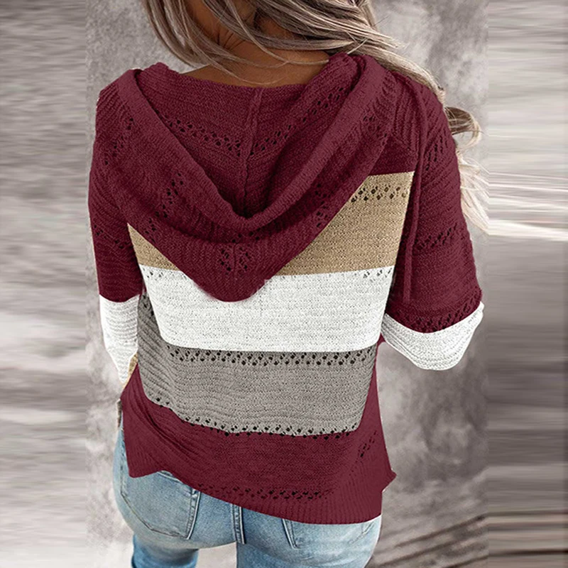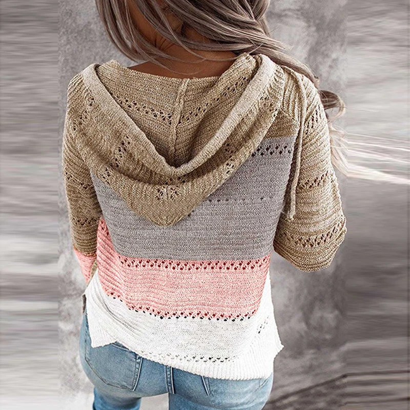 Женский ажурный свитер с капюшоном, Осенний пикантный полосатый лос...