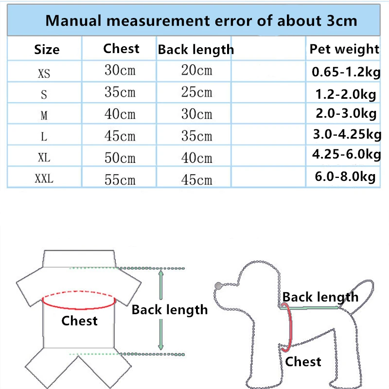 2. Для двух ног, пожалуйста, обратите внимание на обхват груди, и для четырех ног, должны соответствовать обхвату груди и длине спины.