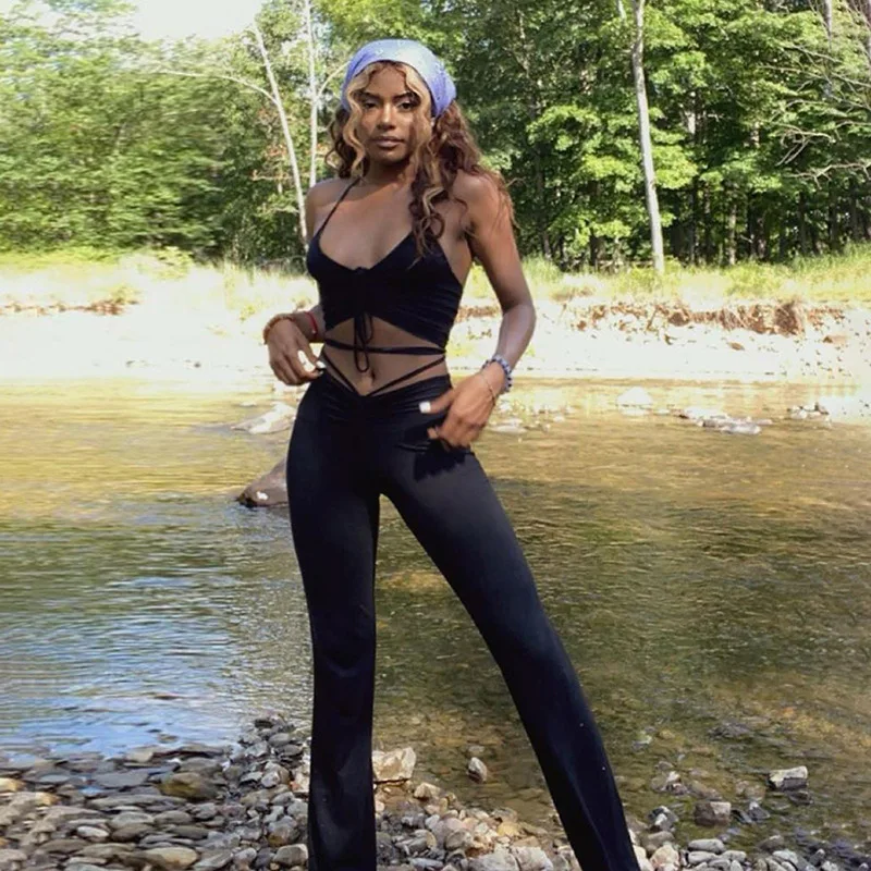 Сексуальный бандажный Топ, длинные штаны, наборы, женский топ с лям...