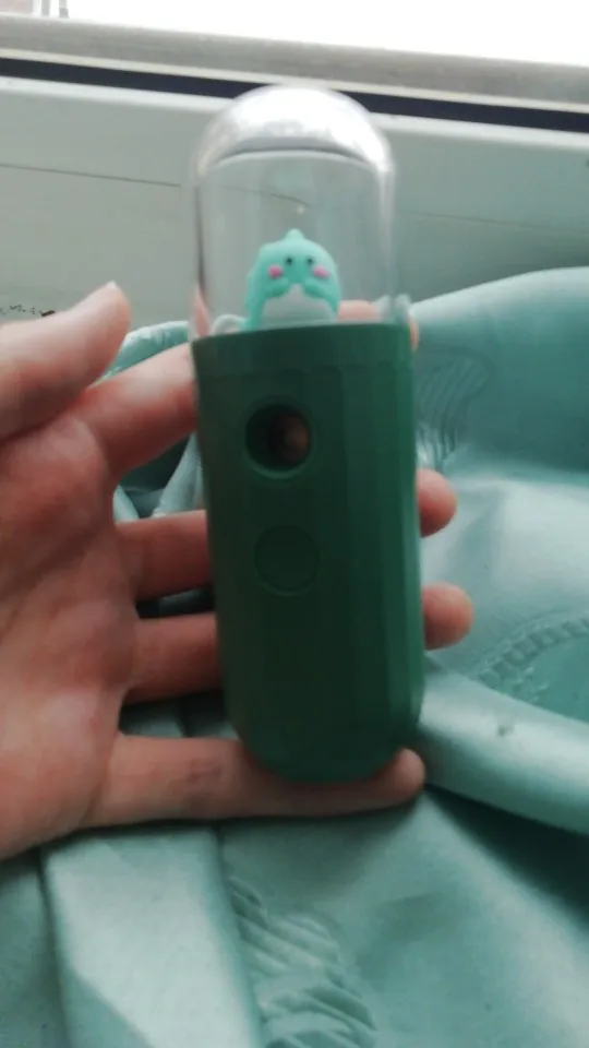 ¡ME ENCANTA! Ha llegado muy rápido y es tan bonito como en la foto. El tanque de agua es la misma cápsula de plástico transparente. Una vez que se llena, se cierra rodeando el muñeco con agua. Para encenderlo solo tienes que apretar el botón durante 1-2 segundos y ¡listo! Pulveriza con la suficiente fuerza para disparar el agua con suavidad. ¿Tratamiento facial? ¡Pon una gota de aceite esencial y aplícalo sobre el rostro previamente limpio!