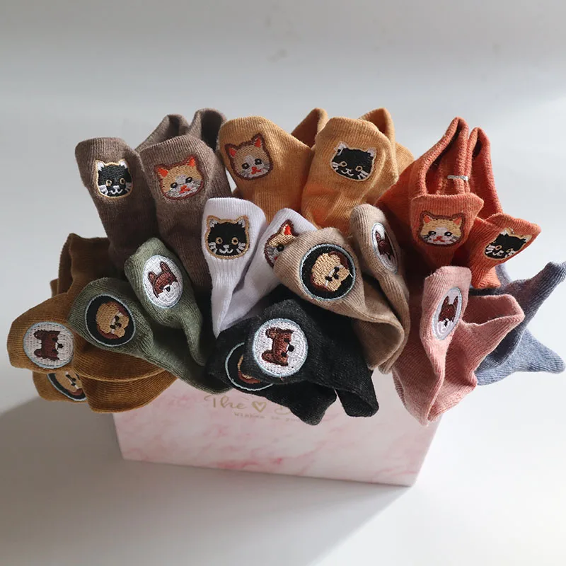 Носки женские с вышивкой в виде кота, 10 пар, Размеры 35-42