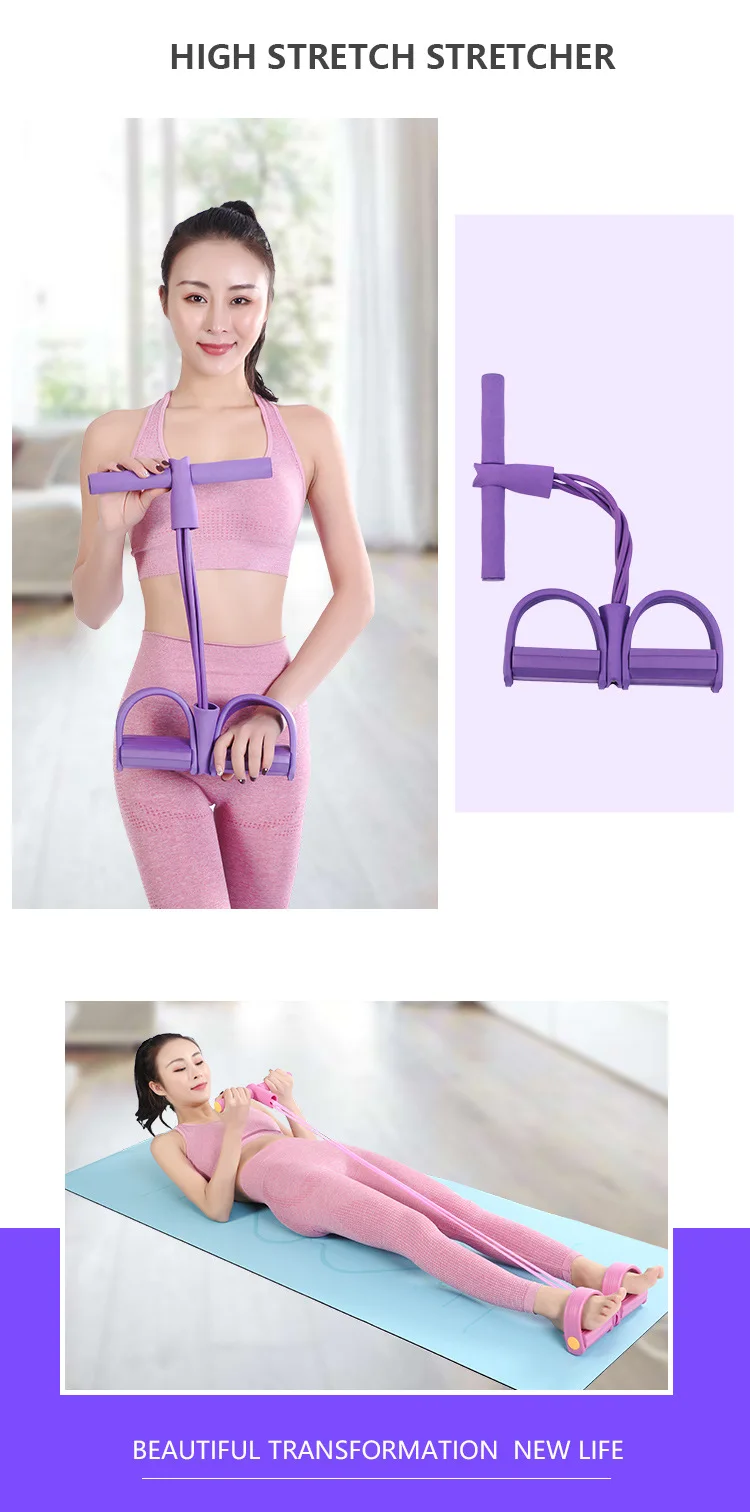 Тренажер для фитнеса с сопротивлением, тренажер для фитнеса с 4 трубками, спортивный экспандер для ног, латексная веревка для гимнастики