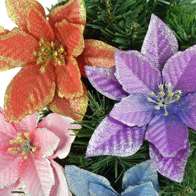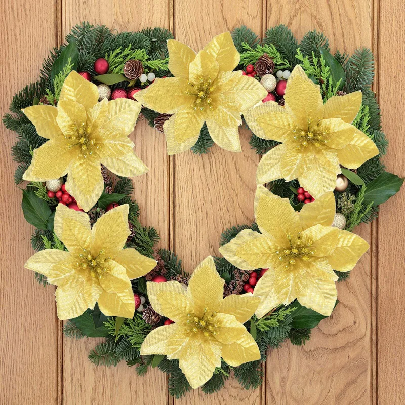 10 шт., блестящий цветок Poinsettia, Рождественский венок, елочные украшения, Рождественский Новогодний подарок, вечерние свадебные цветы, скрапбукинги, гирлянды